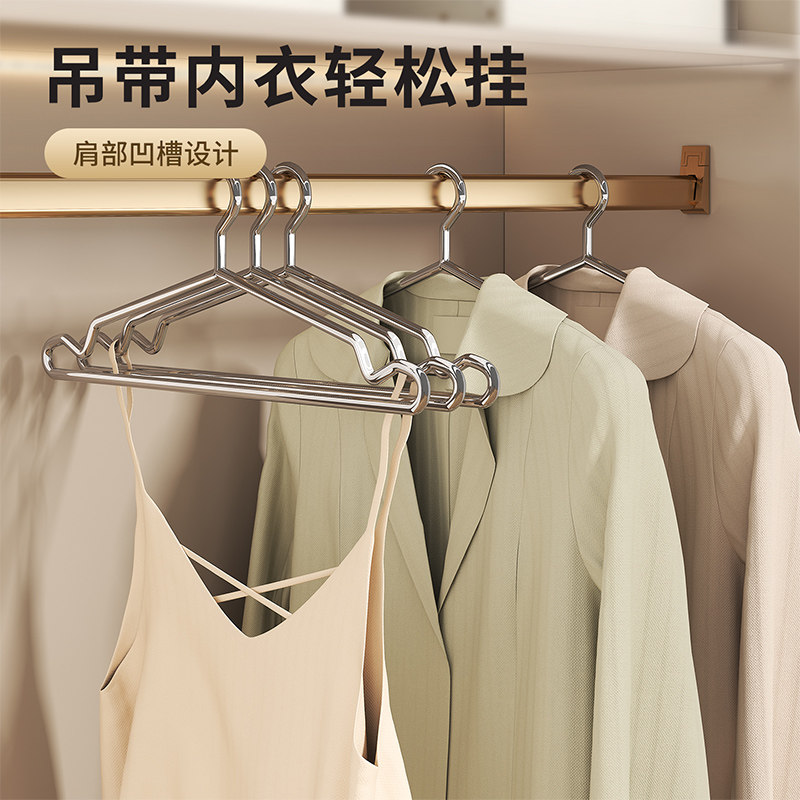 特粗不锈钢衣架实心加粗家用挂衣晾晒无痕防肩角加厚防风衣服撑子