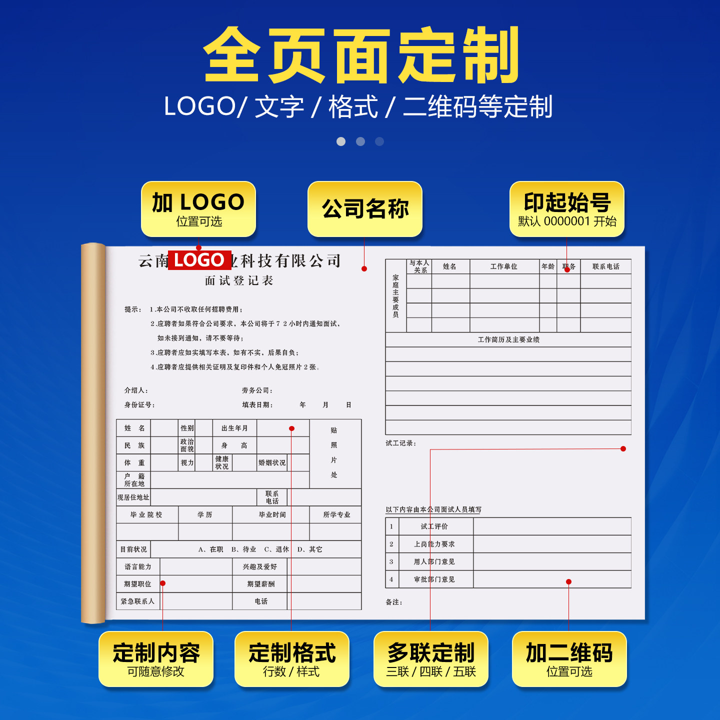 【面试登记表】人事招聘入职登记表应聘人员简历表员工档案申请表