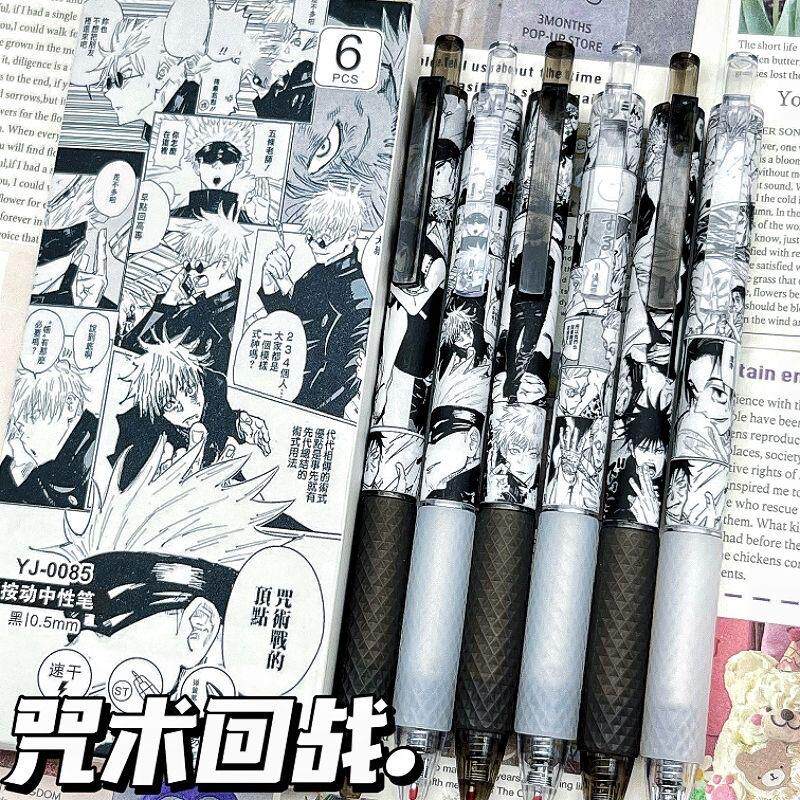 火影忍者限定按动笔ins黑白漫画风高颜值咒术回战男孩0.5黑色水笔