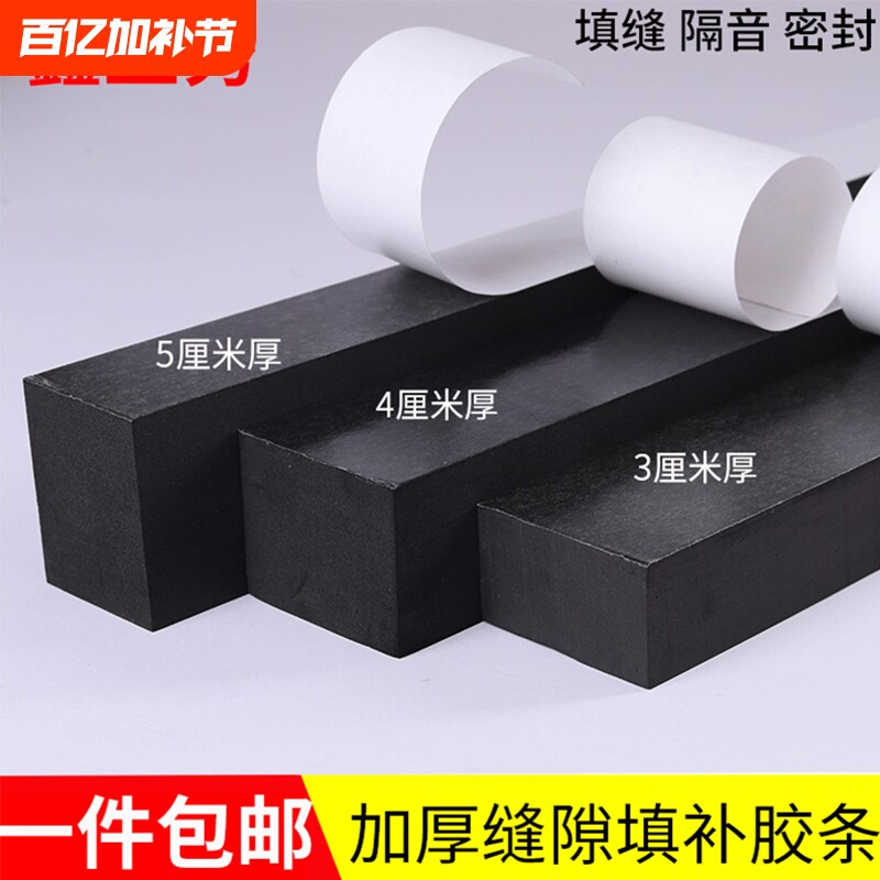 黑色单面海绵EVA胶带防撞密封条隔音减震缓冲挡水止浆填缝泡沫橡胶泡棉胶条加厚防水自粘型缝隙填补隔音贴