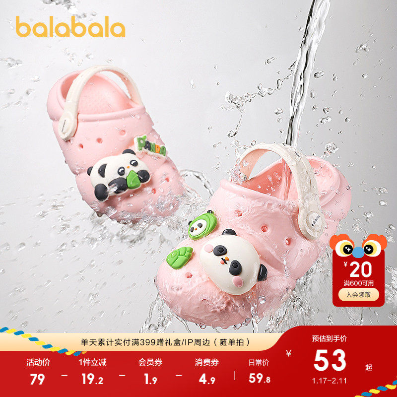 巴拉巴拉童鞋儿童洞洞鞋男童女童凉拖鞋卡通熊猫粽子图案夏季新款