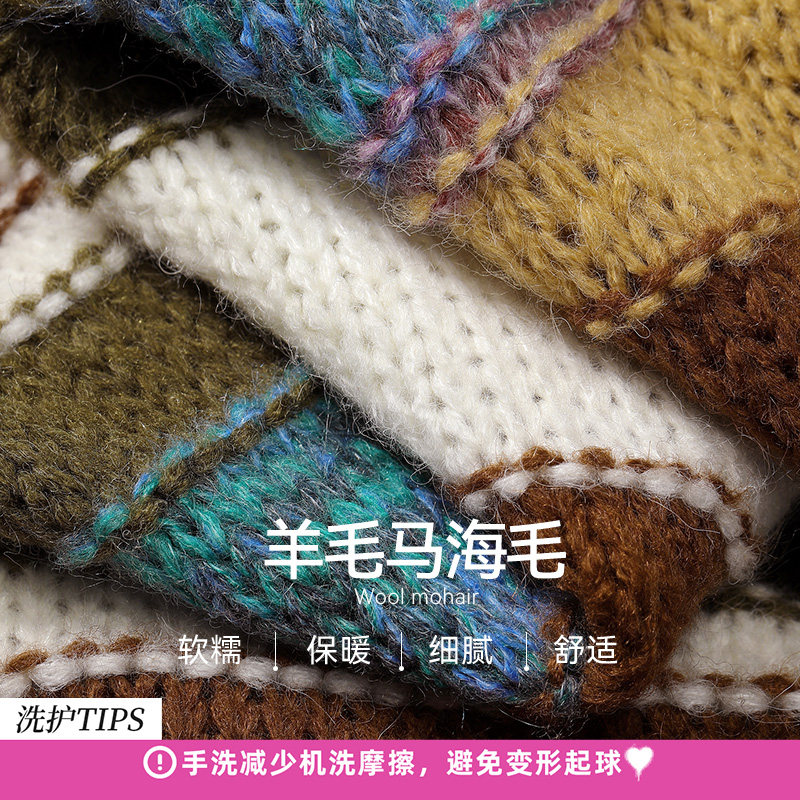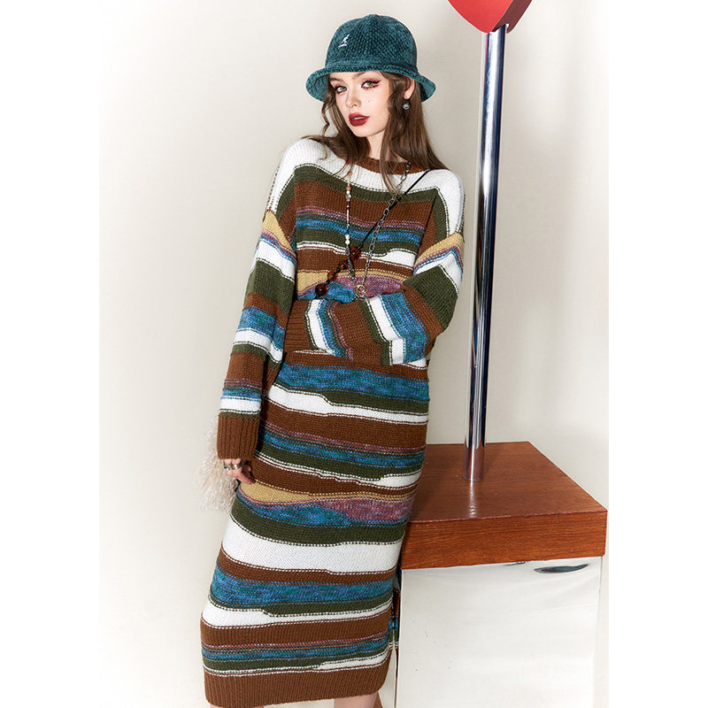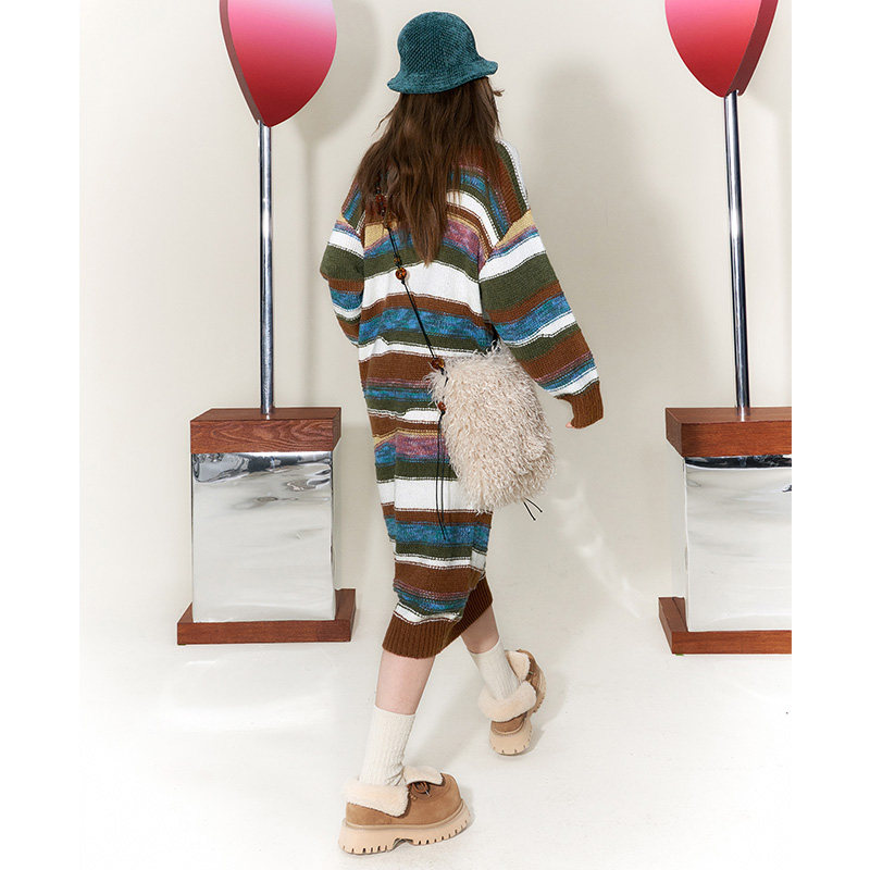 妖精的口袋复古撞色条纹连衣裙女2025年冬季新款宽松长裙新年穿搭