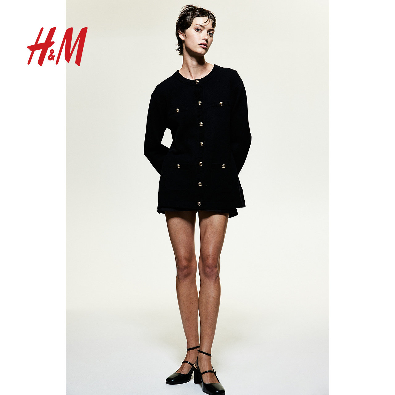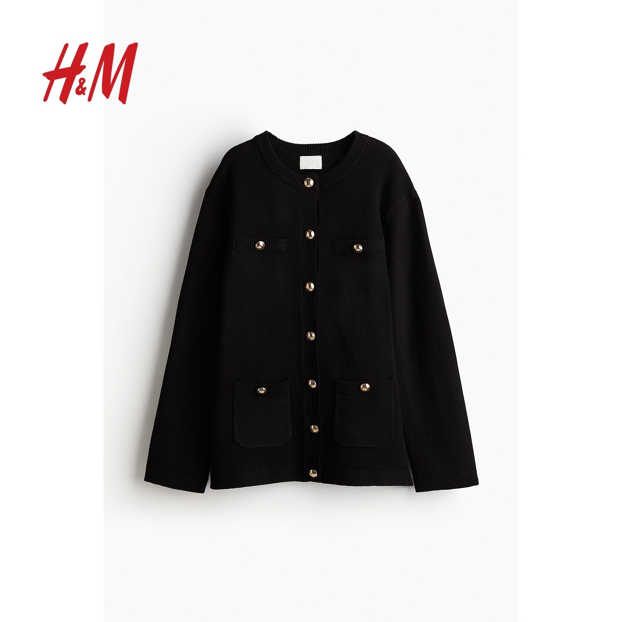HM女装毛针织衫小香风气质时尚休闲纽扣设计开衫打底衫1246573