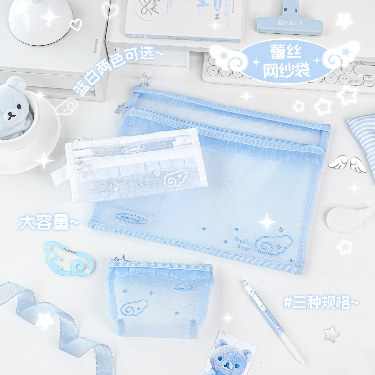 柔设蕾丝网纱笔袋a4文件袋高颜值手提袋学生补习袋收纳化妆包ins