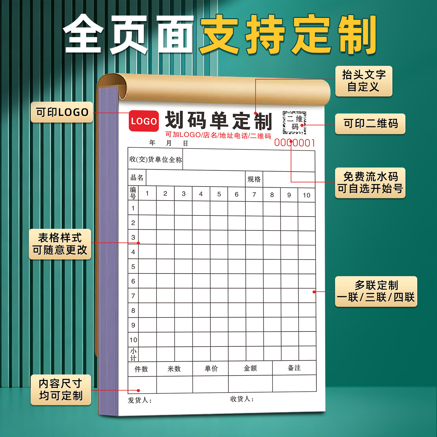 码单本定制二联纺织品出库销售材料清单布匹发货细码单表仓库明细入货服装收货单三联磅码单产品记码单划码单