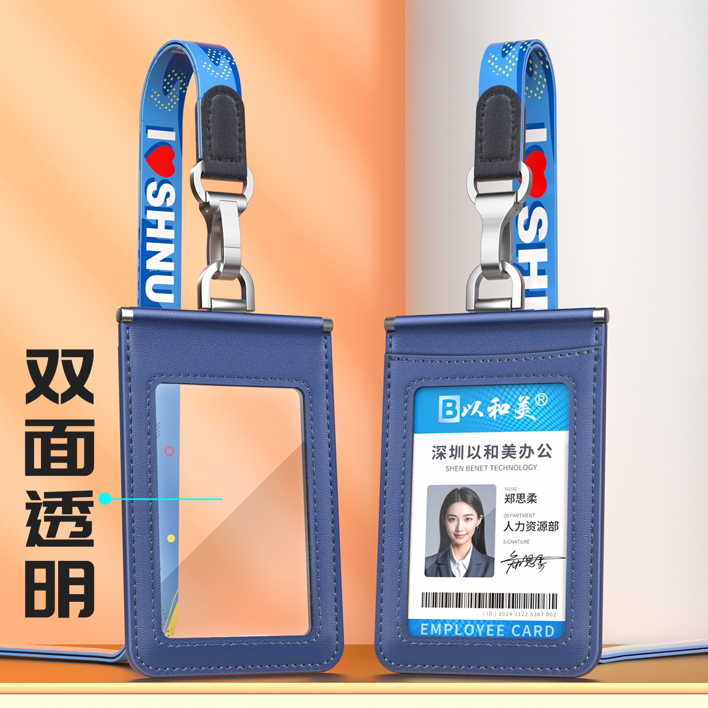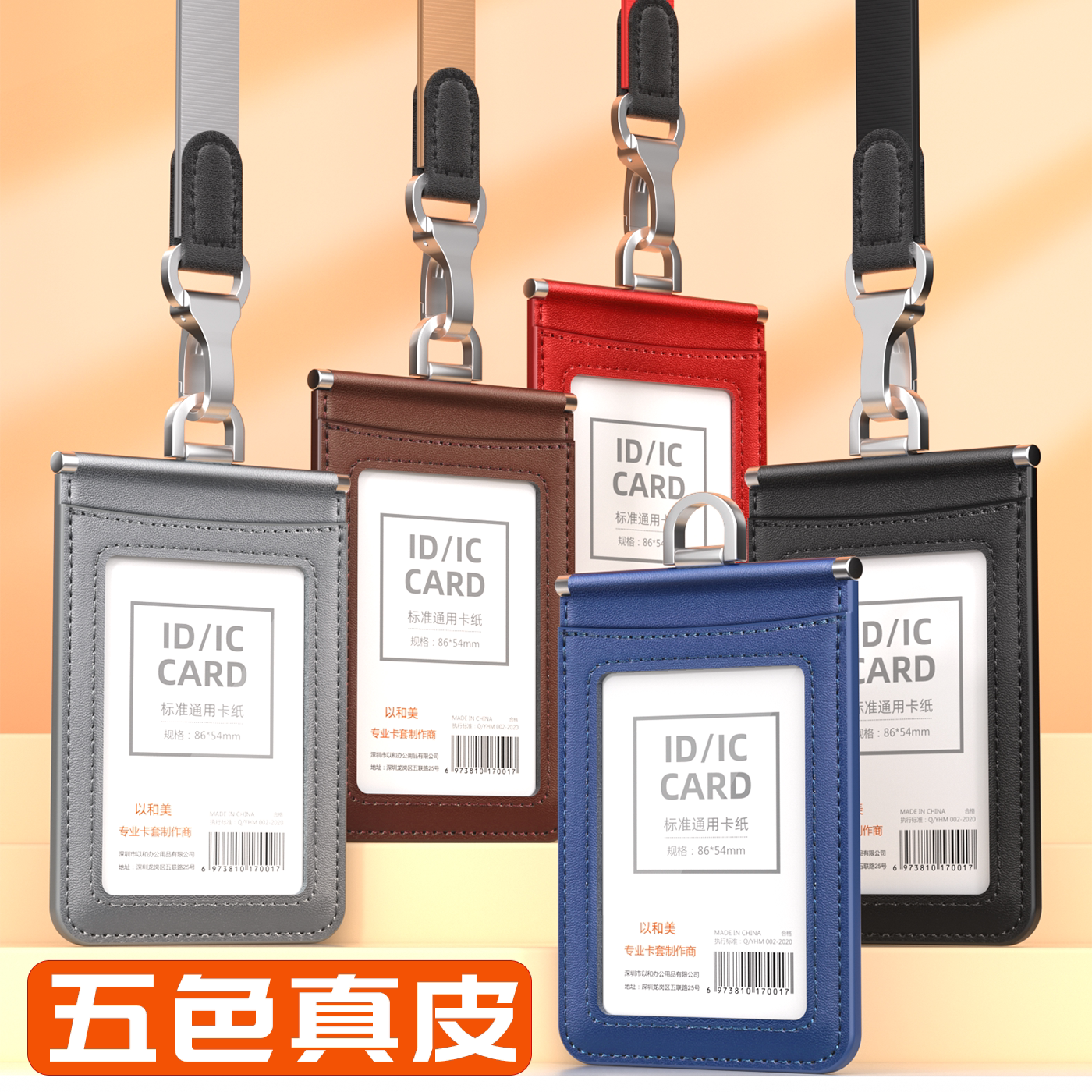 真皮工牌卡套工作证定制证件套双面胸牌带挂脖绳员工工作牌工号牌壳定做logo饭卡公交卡校园卡厂牌卡套高级感
