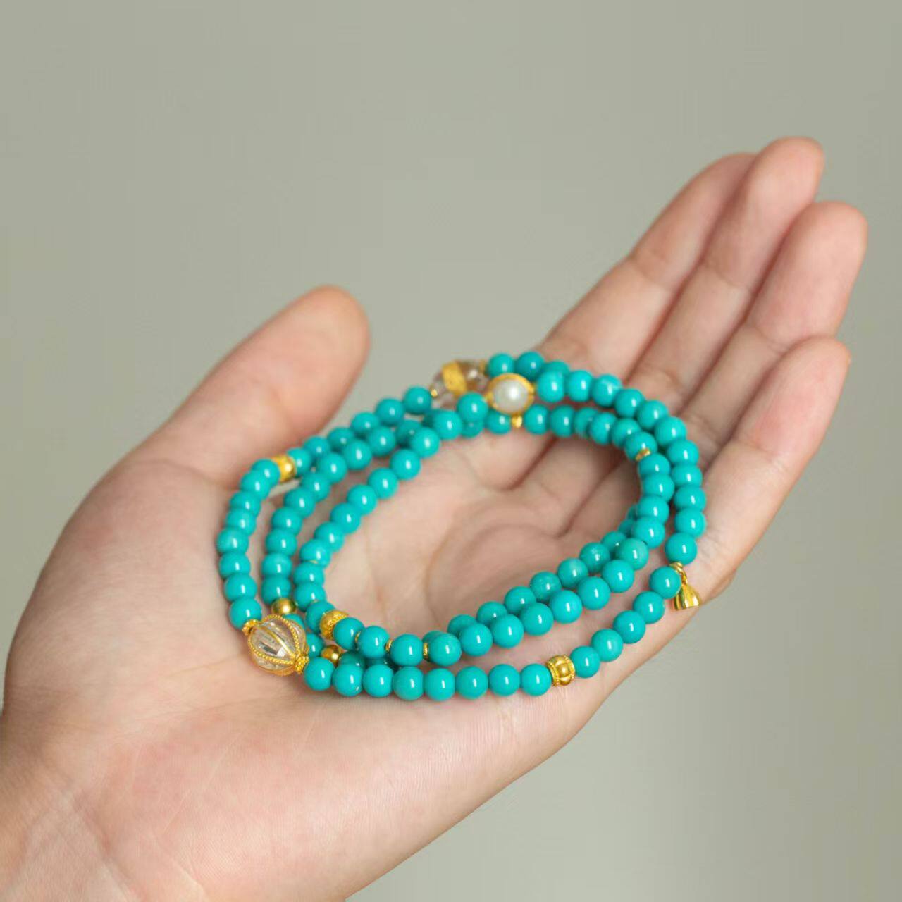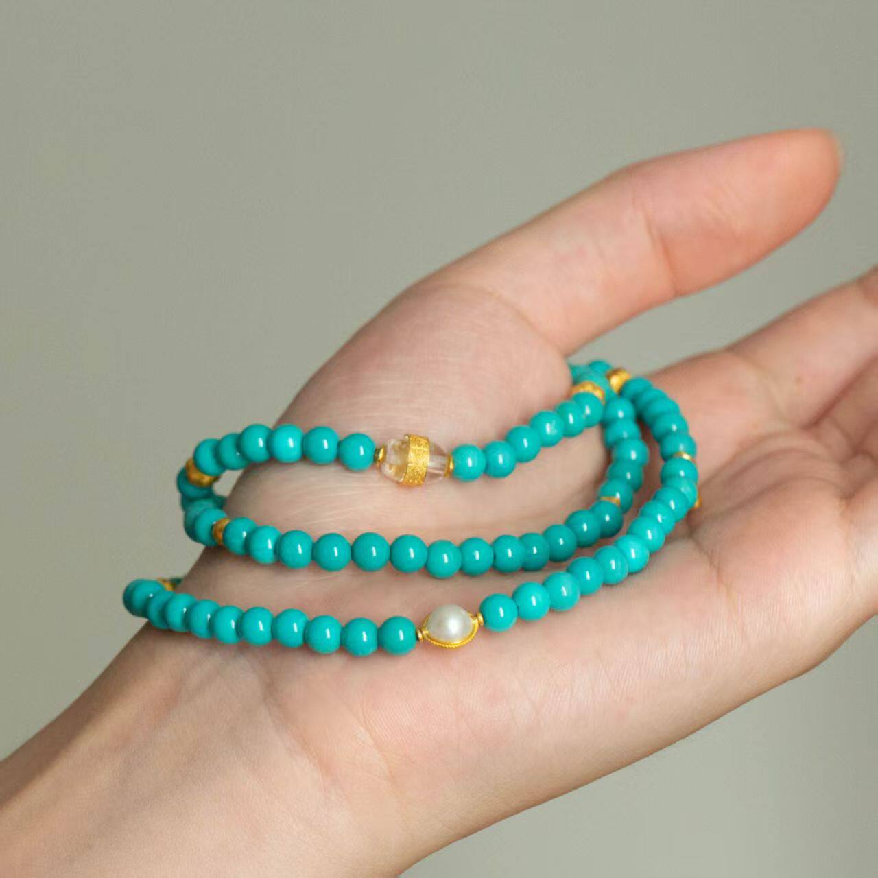 绿松石手串盘玩女生蜜蜡手链小众高级感精致玉石新中式首饰