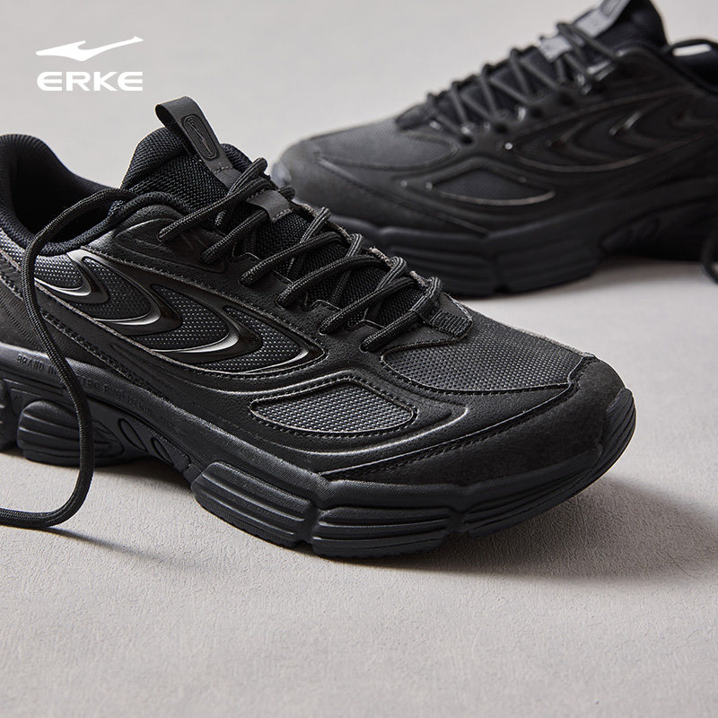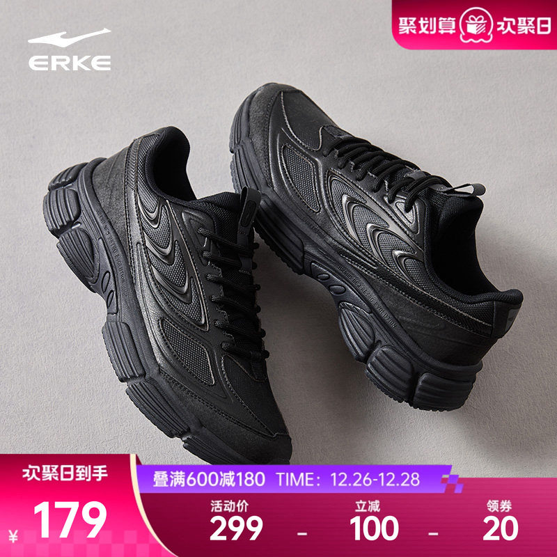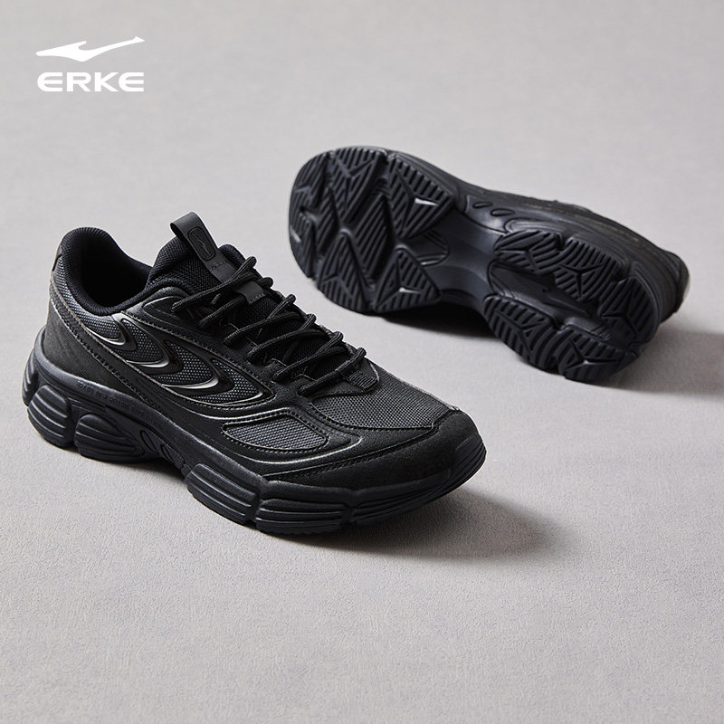 鸿星尔克全黑色男鞋秋冬新款休闲鞋公务通勤跑步鞋防滑软底运动鞋