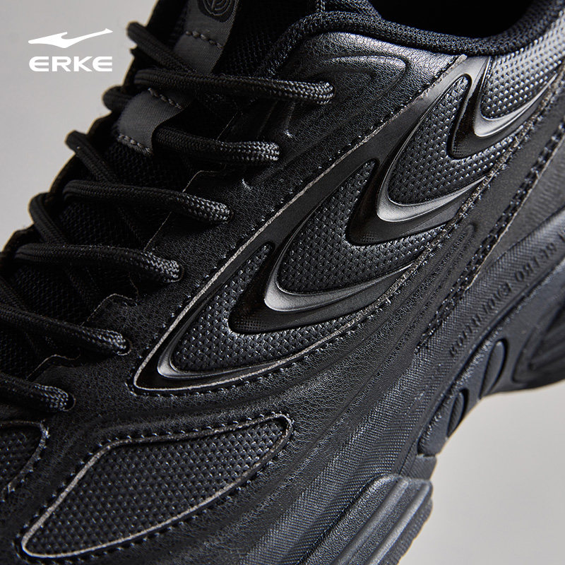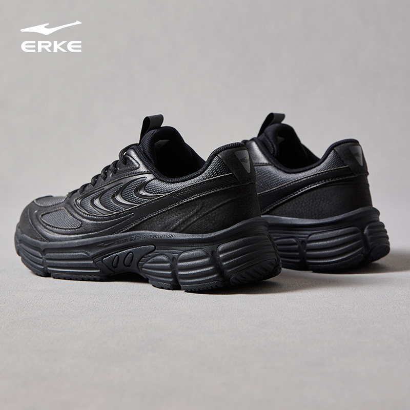 鸿星尔克运动鞋冬新款男鞋网面跑步鞋软底跑鞋黑色皮面爸爸休闲鞋