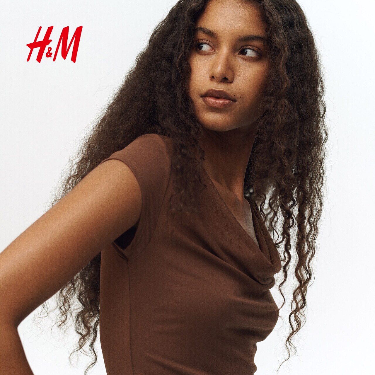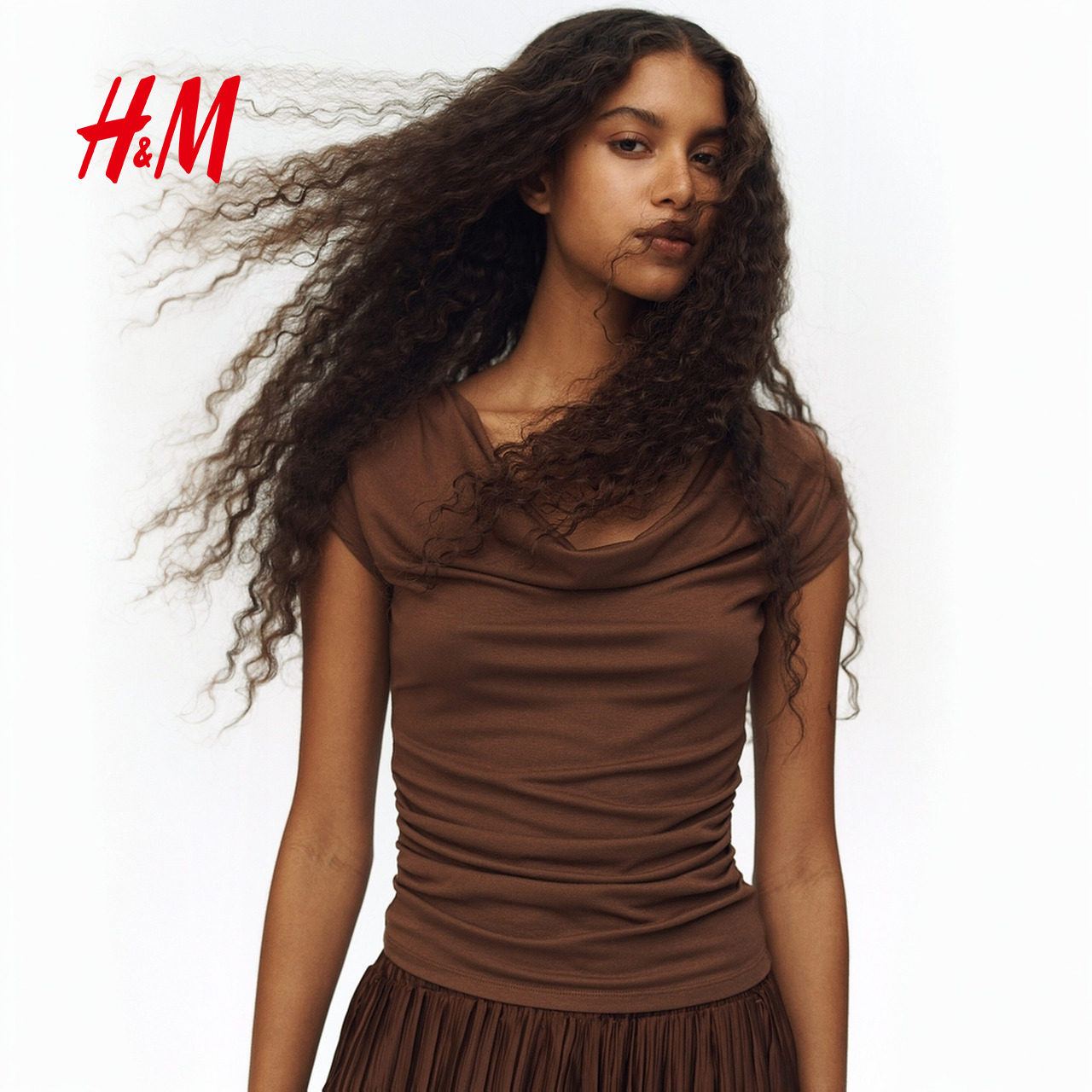 HM女装T恤2026春季新款设计高级感垂优雅褶汗布上衣短袖1316899