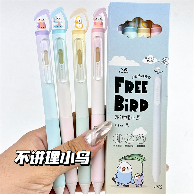 凡物象萌宠猫猫中性笔高颜值ins风CS速干旋转笔学生刷题考试黑笔