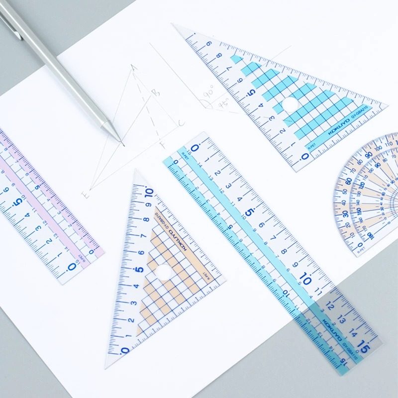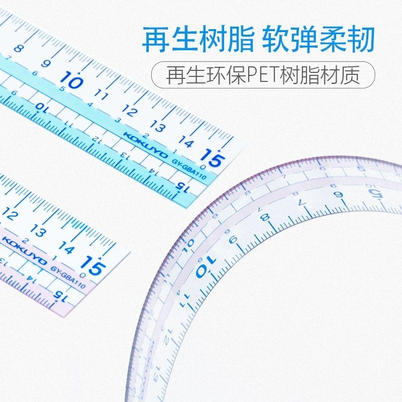日本KOKUYO国誉软尺套尺直尺学生用几何制图尺子量角器三角板15cm