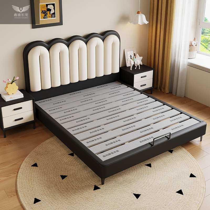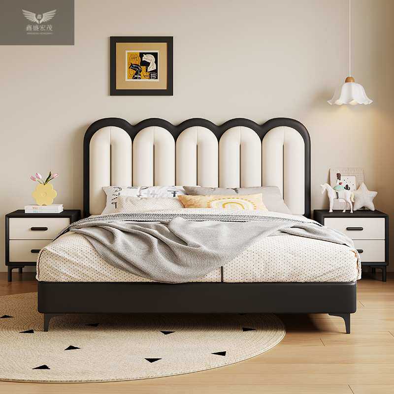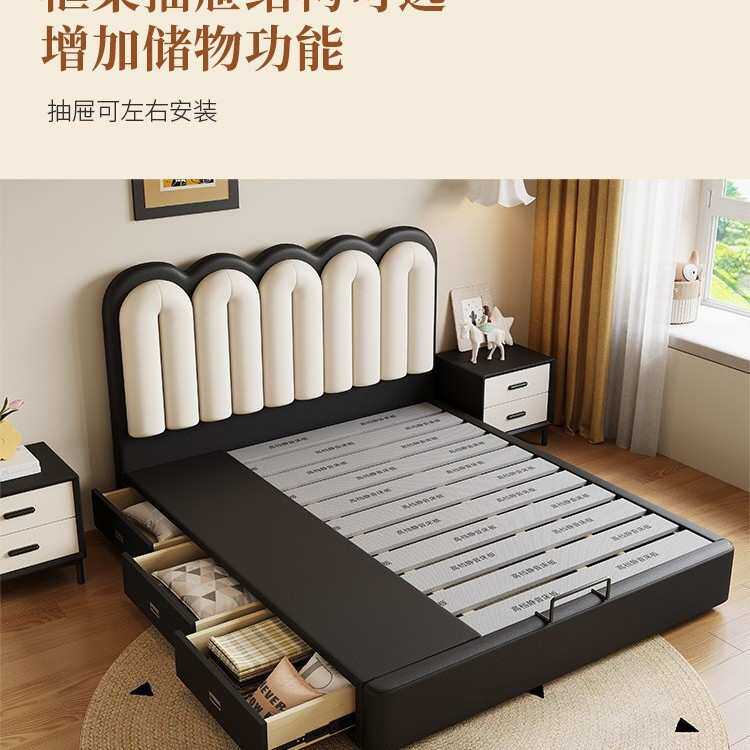 复古风法式生态真皮床家用主次卧室软包双人小户型储物儿童皮艺床