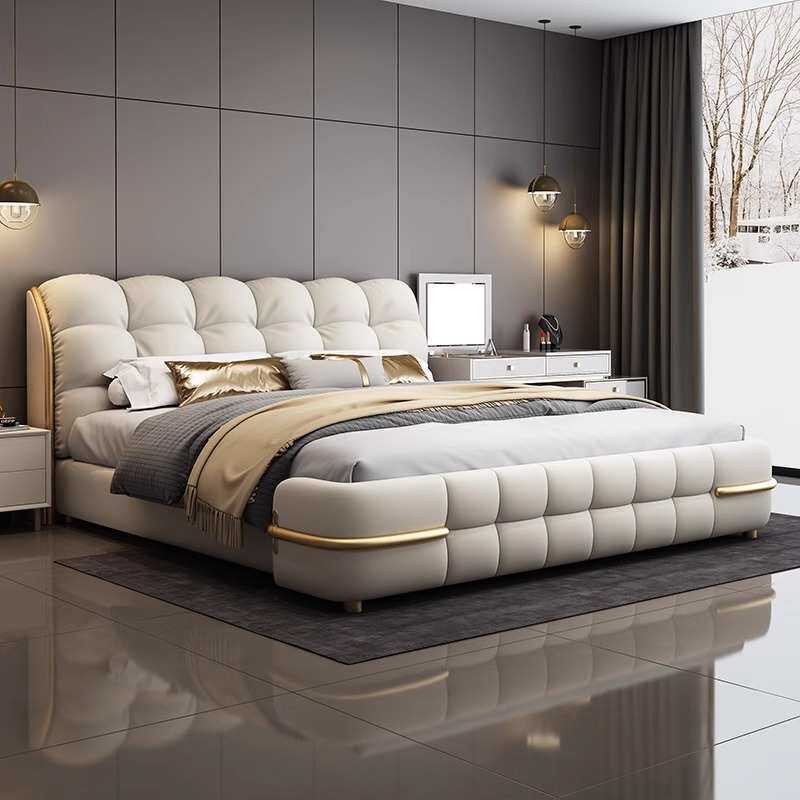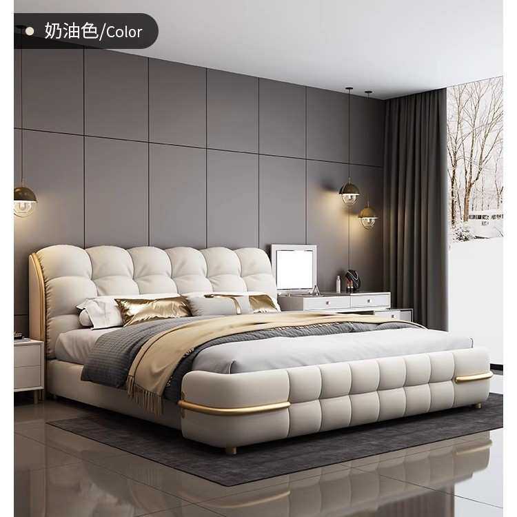 意式豪华主卧大床现代简约真皮奶油风双人婚床高端大气轻奢皮艺床