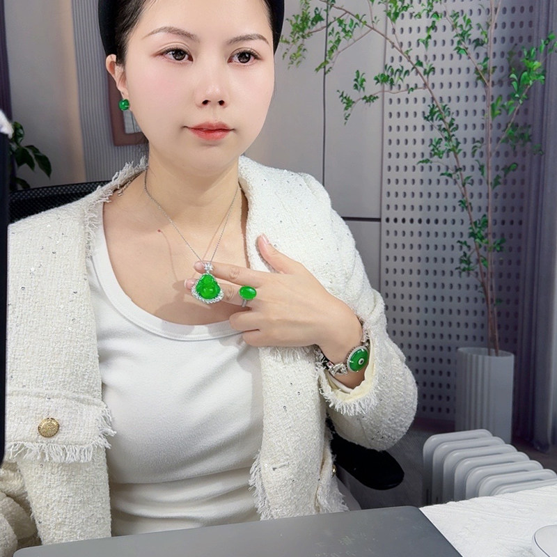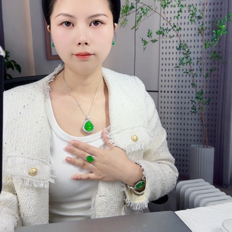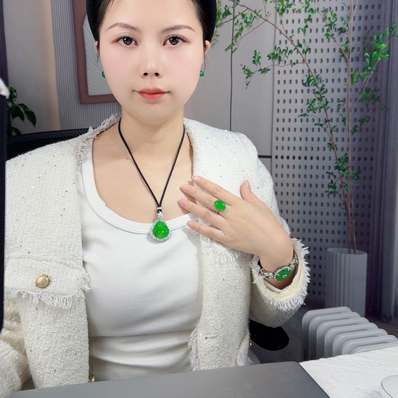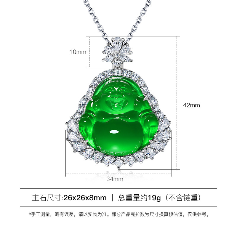 AILEQ S925银镶嵌天然玉髓满绿弥勒佛公吊坠珠宝雅丹春夏项链K10