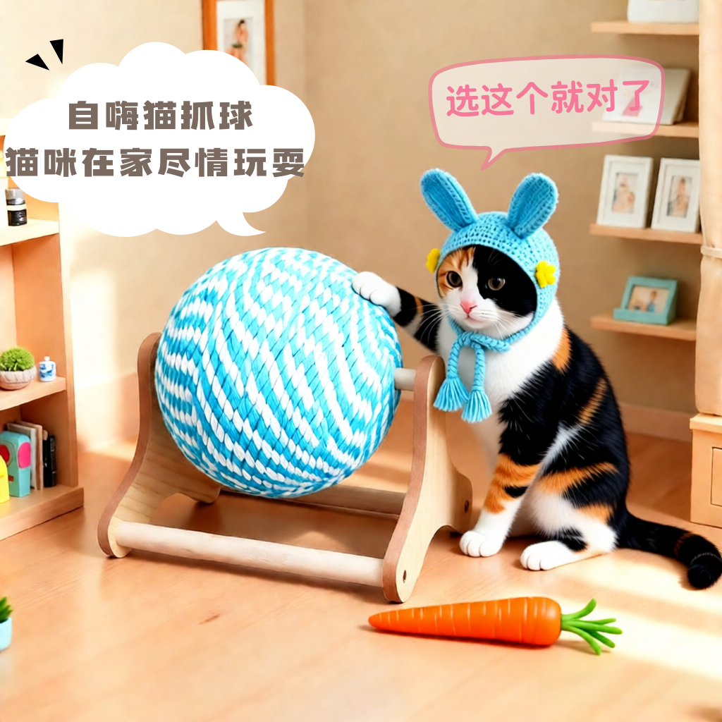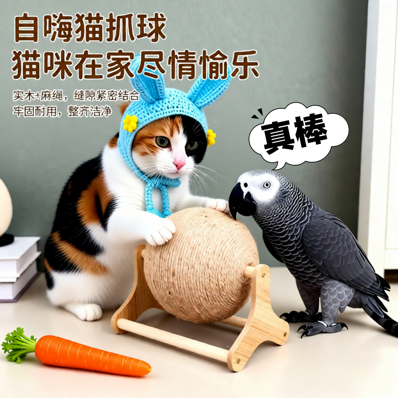 剑麻立式球类不掉屑新款自嗨玩具实木球笼猫抓球猫咪用品自嗨玩具