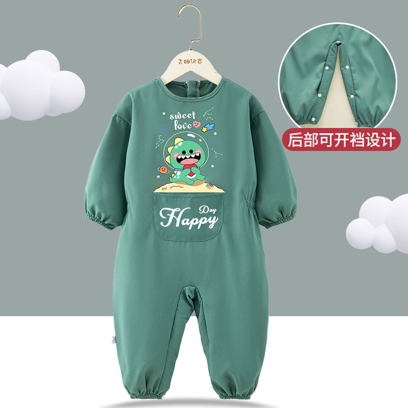 婧麒宝宝罩衣秋冬季婴幼儿防水防脏连体罩衣男童女童反穿衣爬爬服