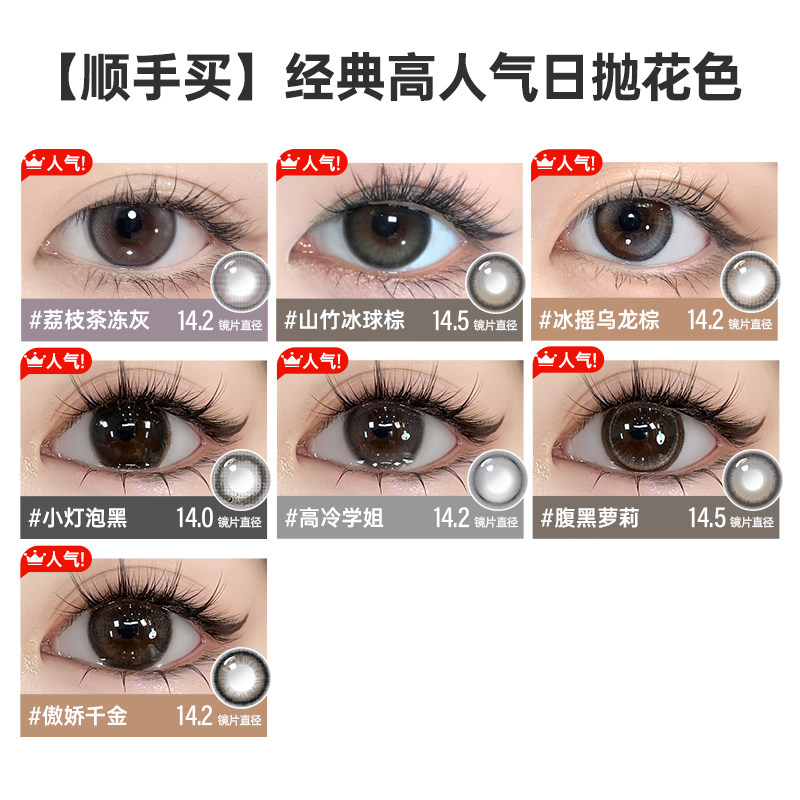 【秒杀7.9起】可啦啦日常小直径美瞳日抛2片装隐形眼镜冰摇乌龙棕