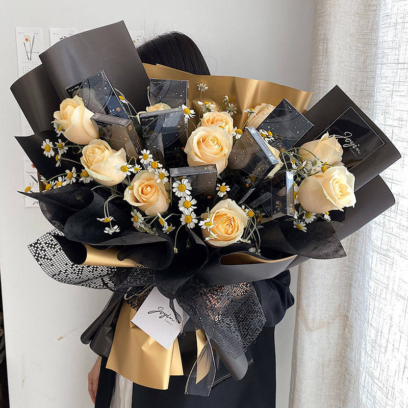 开业大吉大红鎏金纸鲜花包装纸红色金色欧雅纸花束花篮包花纸材料