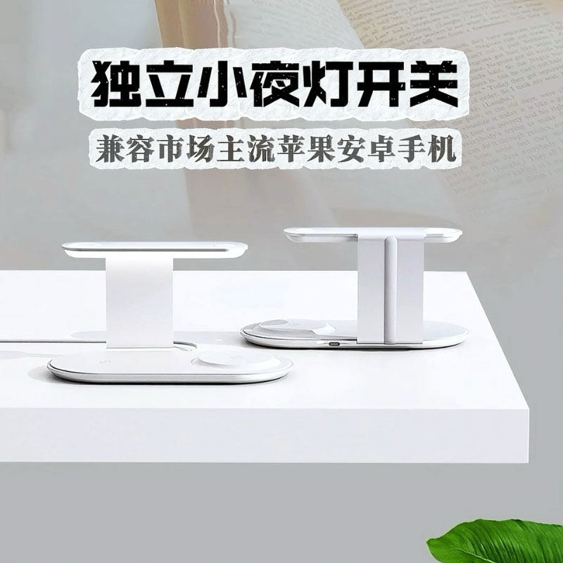 礼品小夜灯多功能无线充电器三合一手机耳机通用智能感应手机手表耳机多设备可以同时快充桌面座充