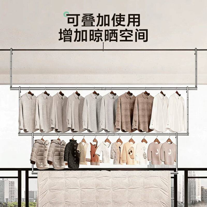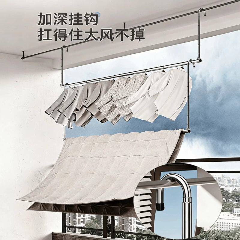 晾衣架家用阳台伸缩晾衣杆升降凉衣捍吊挂不锈钢免打孔晒被子神器