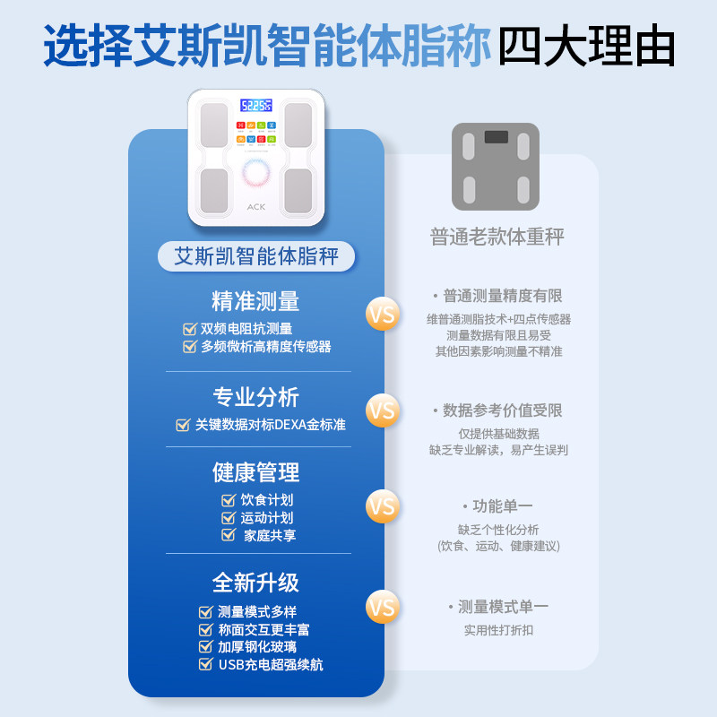 艾斯凯电子秤2026款家用精准电子称重人体秤智能体脂秤精准测体重
