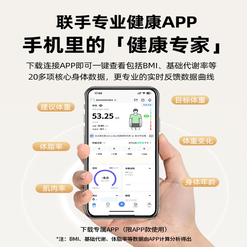 LEFU乐福光能体脂秤智能健康秤体重秤家用电子秤精准测脂减肥专用