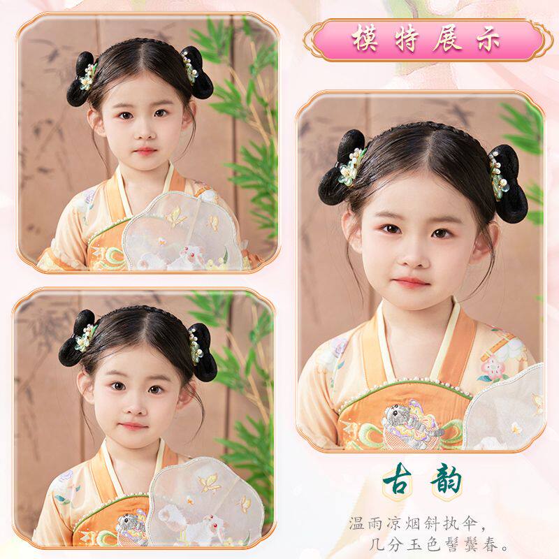 儿童汉服假发蝴蝶结发髻造型古装假发包女童汉服假发头饰假发古风