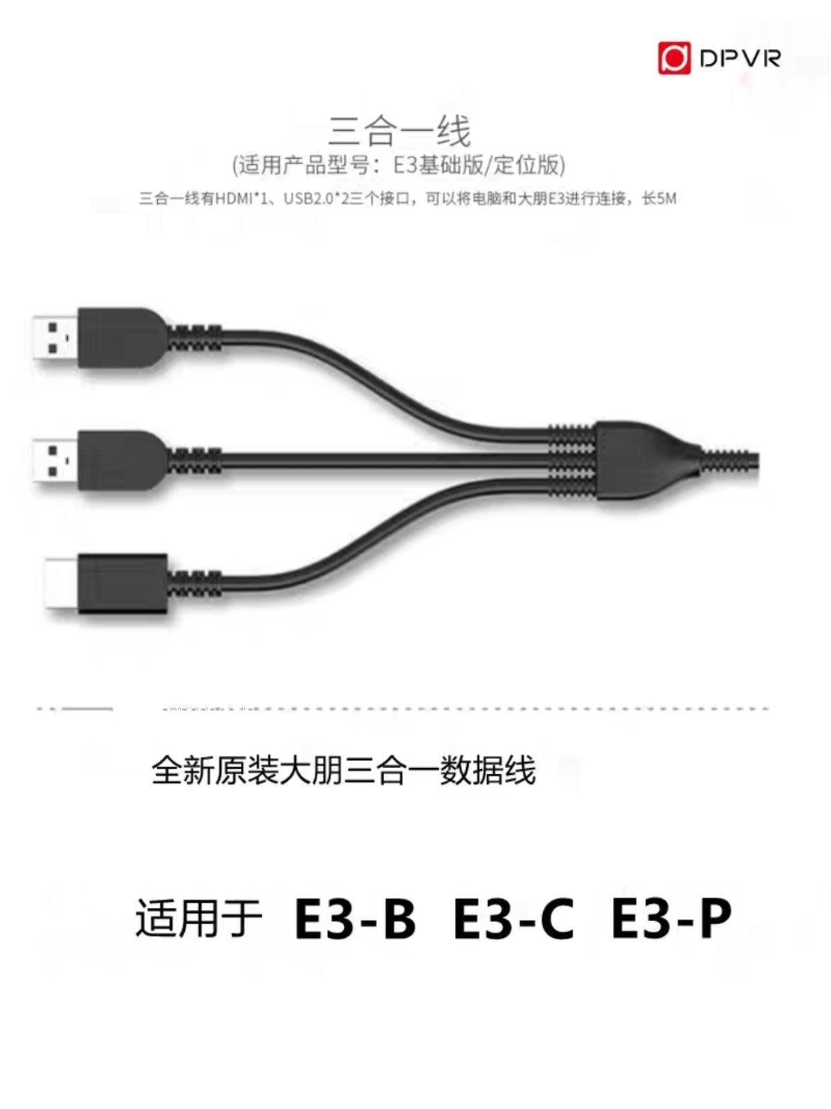 大朋e3 DPvr大朋E3B E3C E3P头盔数据连接线dp三合一头盔线大鹏vr