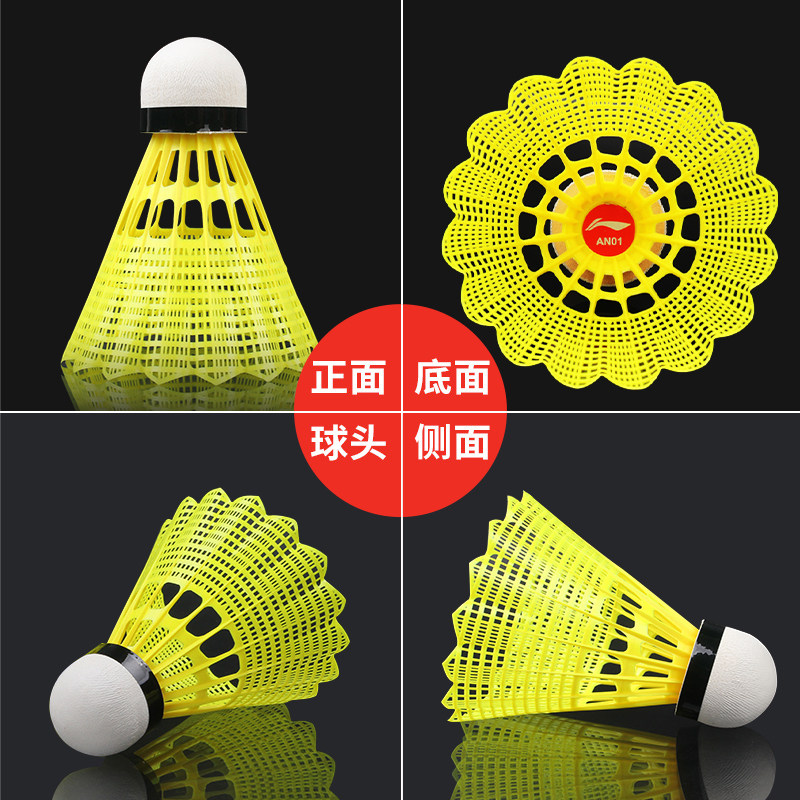 李宁羽毛球小学生专用AN01耐打王不易烂尼龙球室外防风训练塑料球