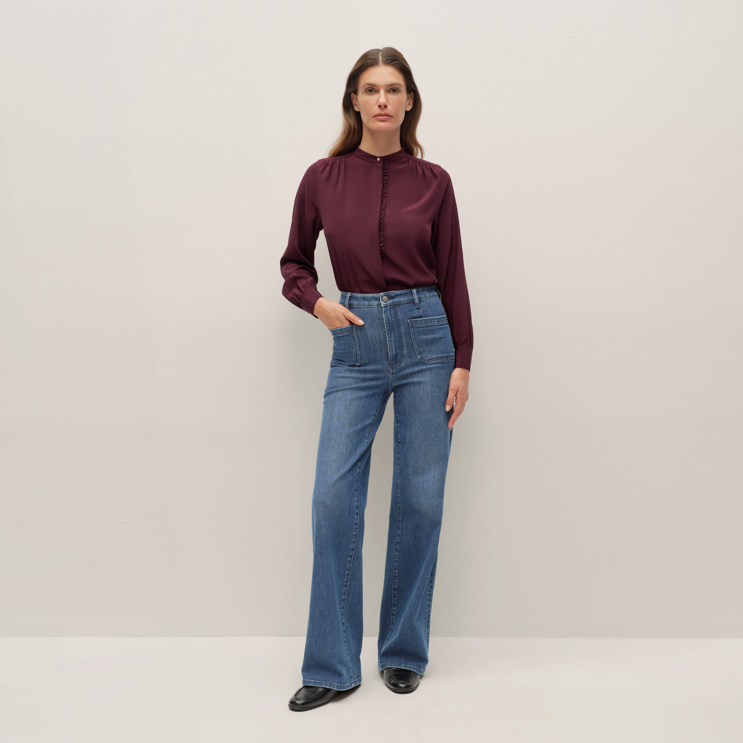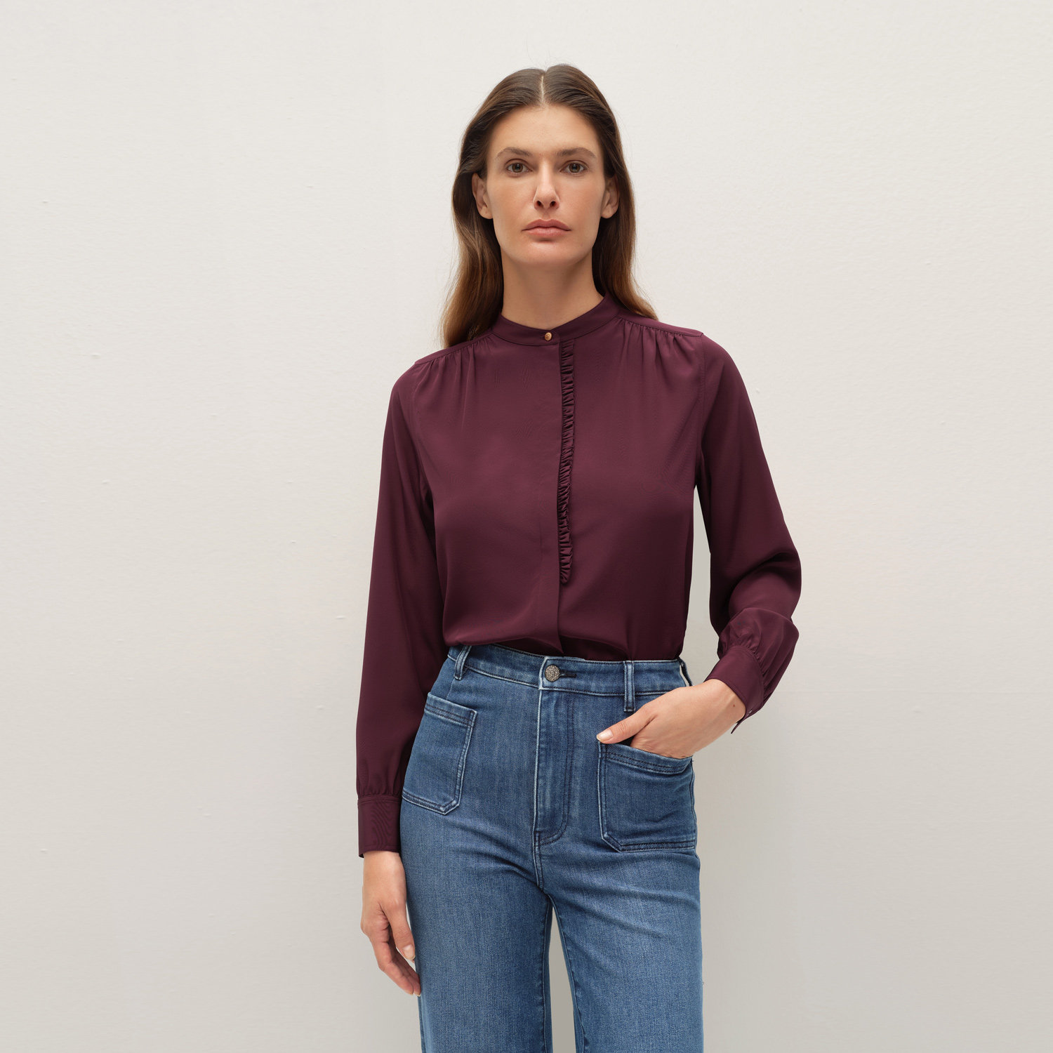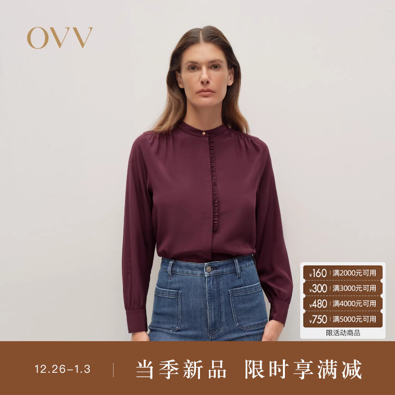 【重磅真丝】OVV2025秋冬新款女装24MM双绉木耳边长袖衬衫