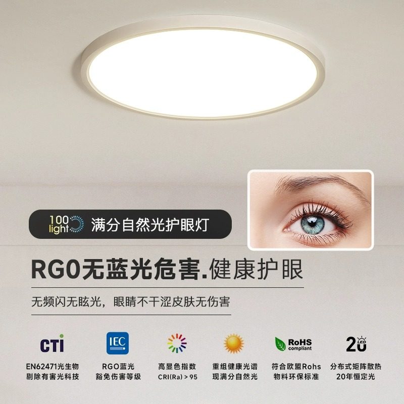 全光谱护眼吸顶灯卧室灯主卧2025年新款中山灯具现代简约房间书房