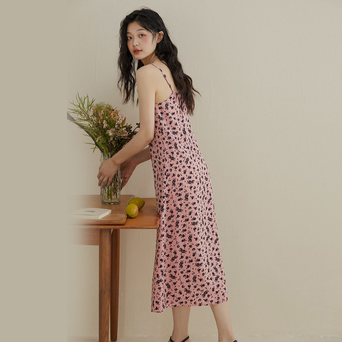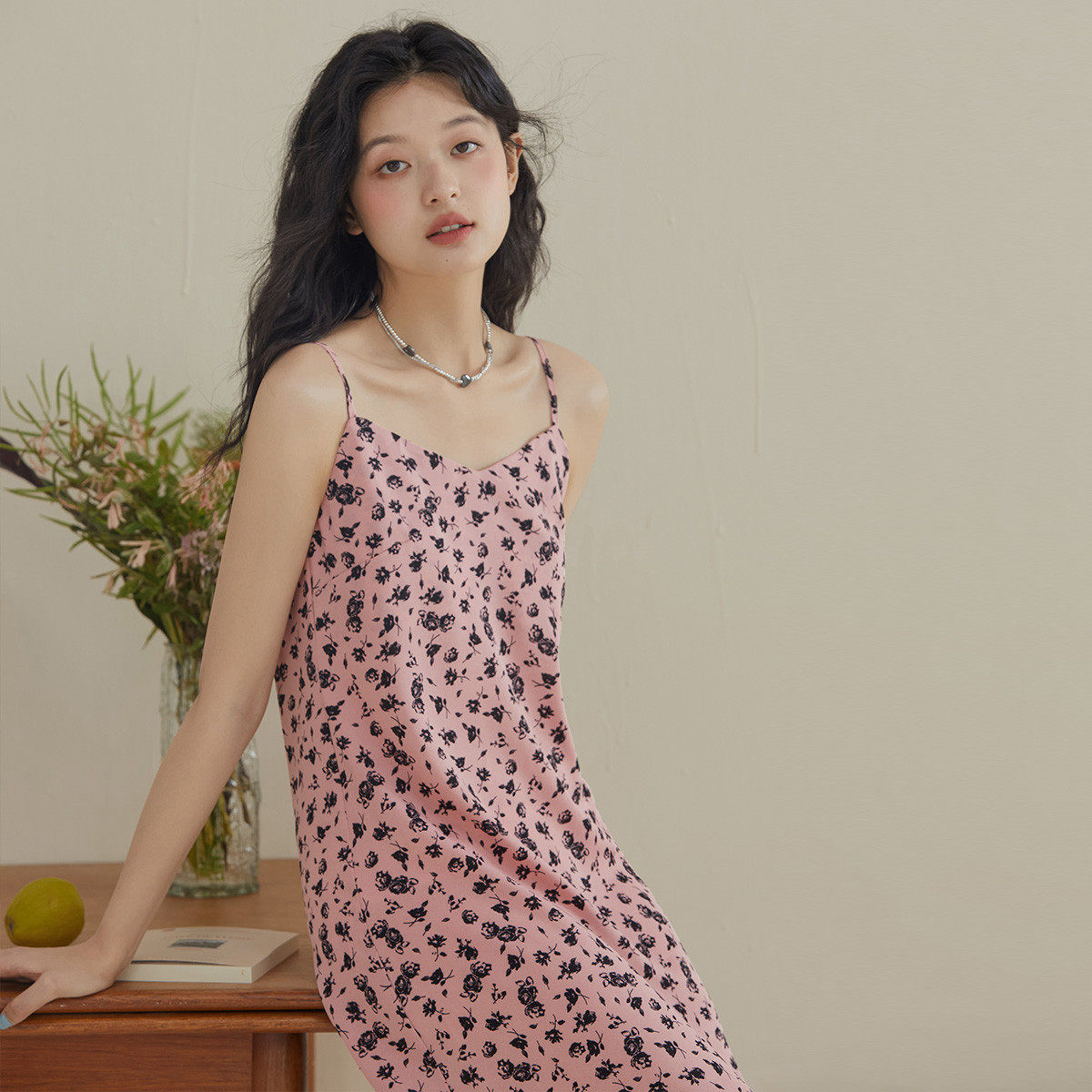 【papi同款】半练带胸垫吊带裙纯欲气质挂脖连衣裙黑裙子粉色长裙