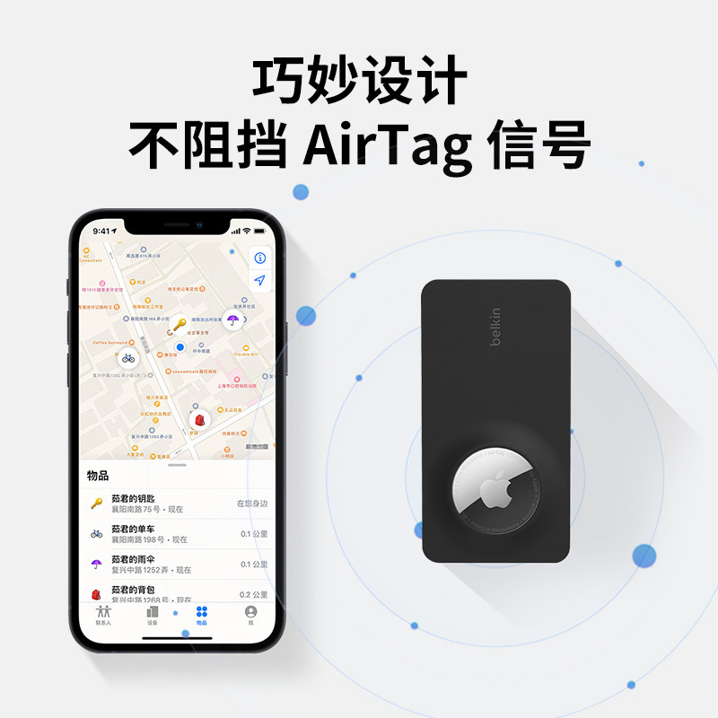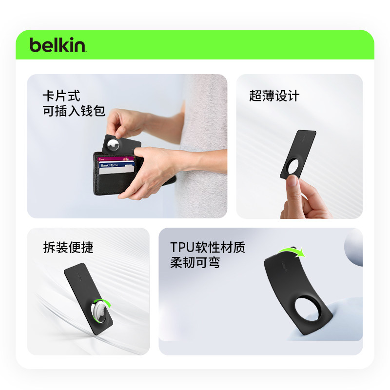 Belkin贝尔金适用于苹果卡片式AirTag保护套柔韧可弯曲不挡信号官网同款防丢器定位器钥匙扣/挂绳拆装便捷
