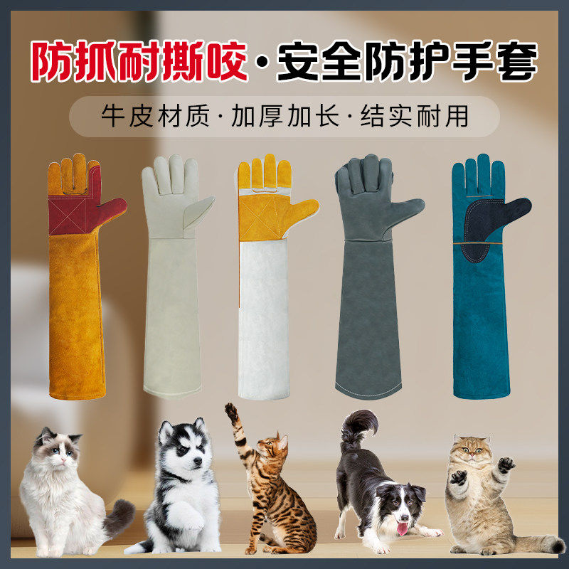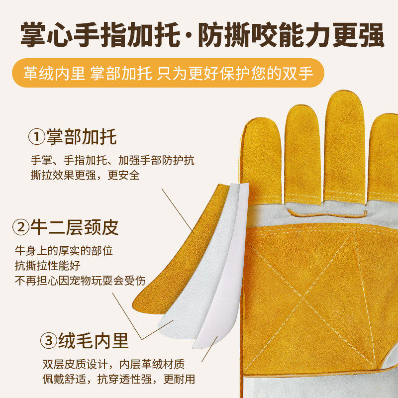 防咬手套防狗咬防猫抓训狗训犬宠物训练牛皮加厚防撕洗澡洗猫防火