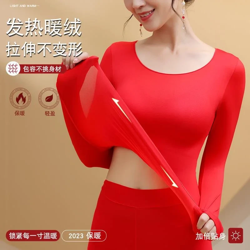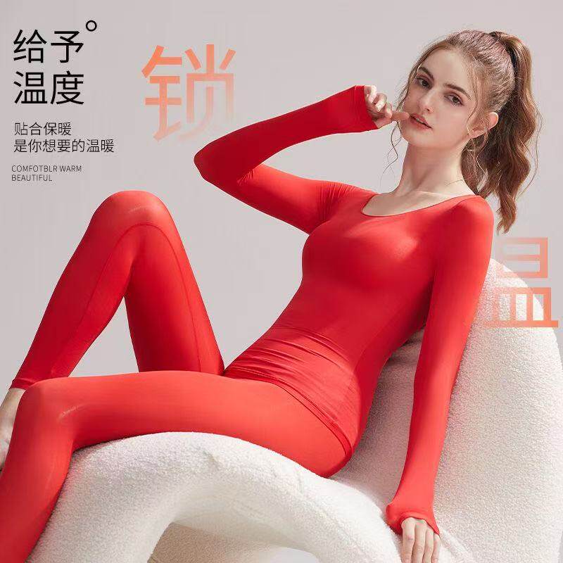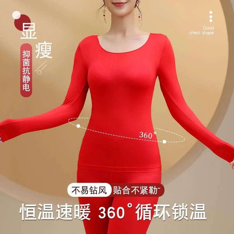 红色秋衣秋裤女套装美体保暖内衣打底衫衣黑科技发热超薄上衣柔软