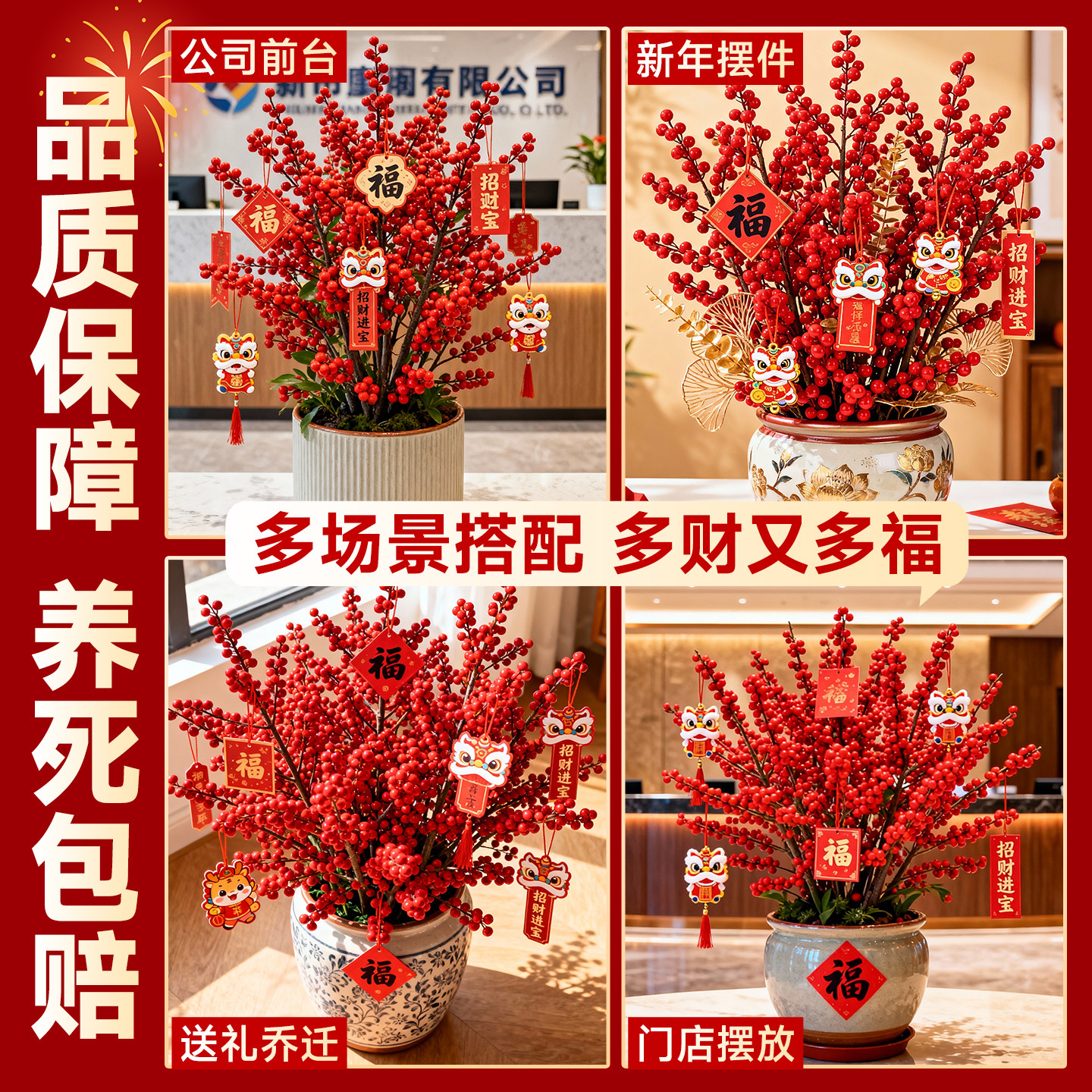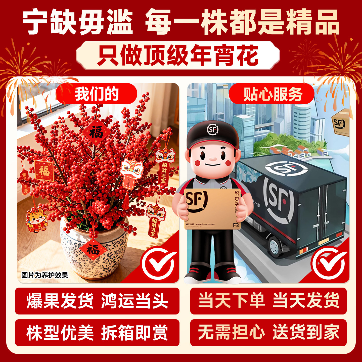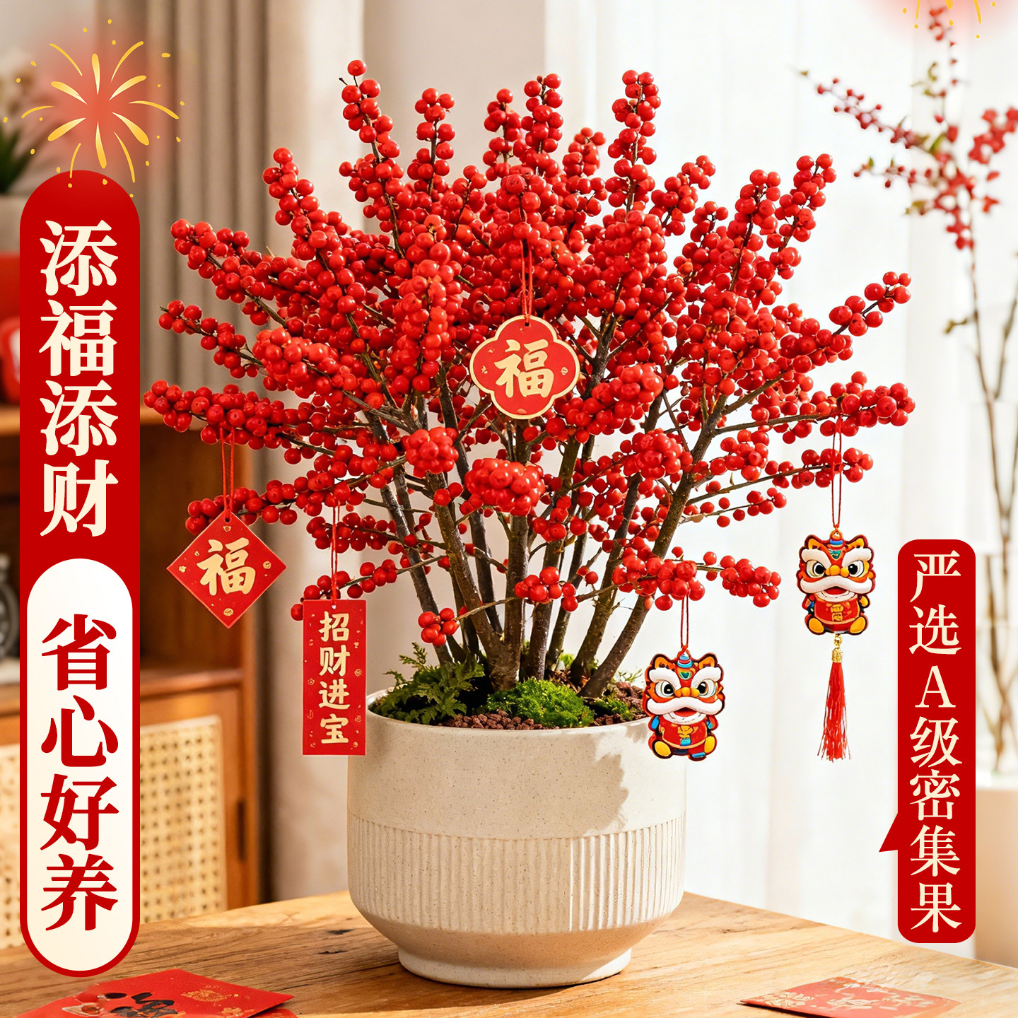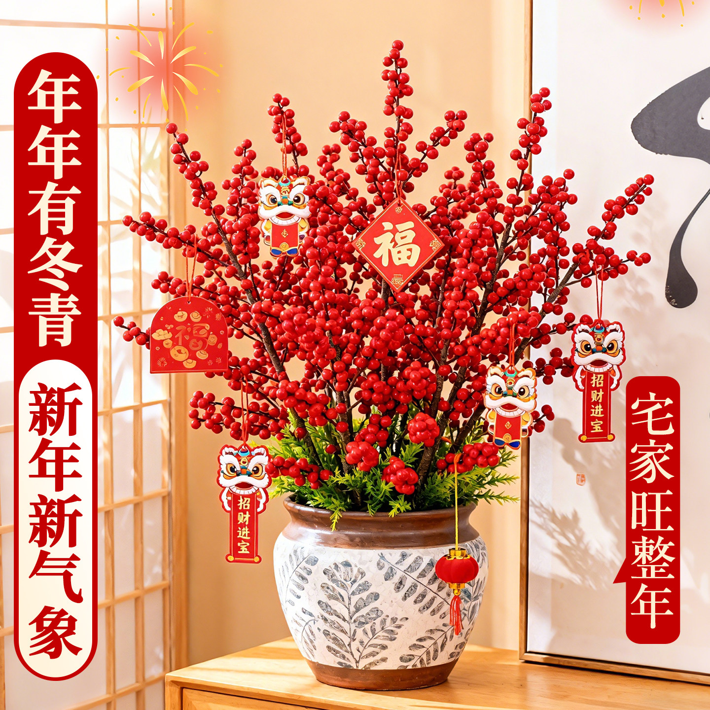 进口北美冬青红果真花带果盆栽鲜切花鲜花老桩盆景绿植物空运保鲜