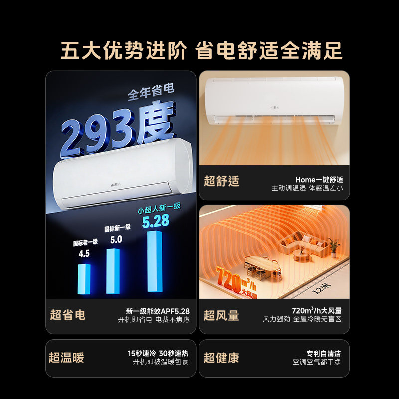 【重磅新品】海尔出品小超人空调1.5匹官方家用一级卧室冷暖挂机