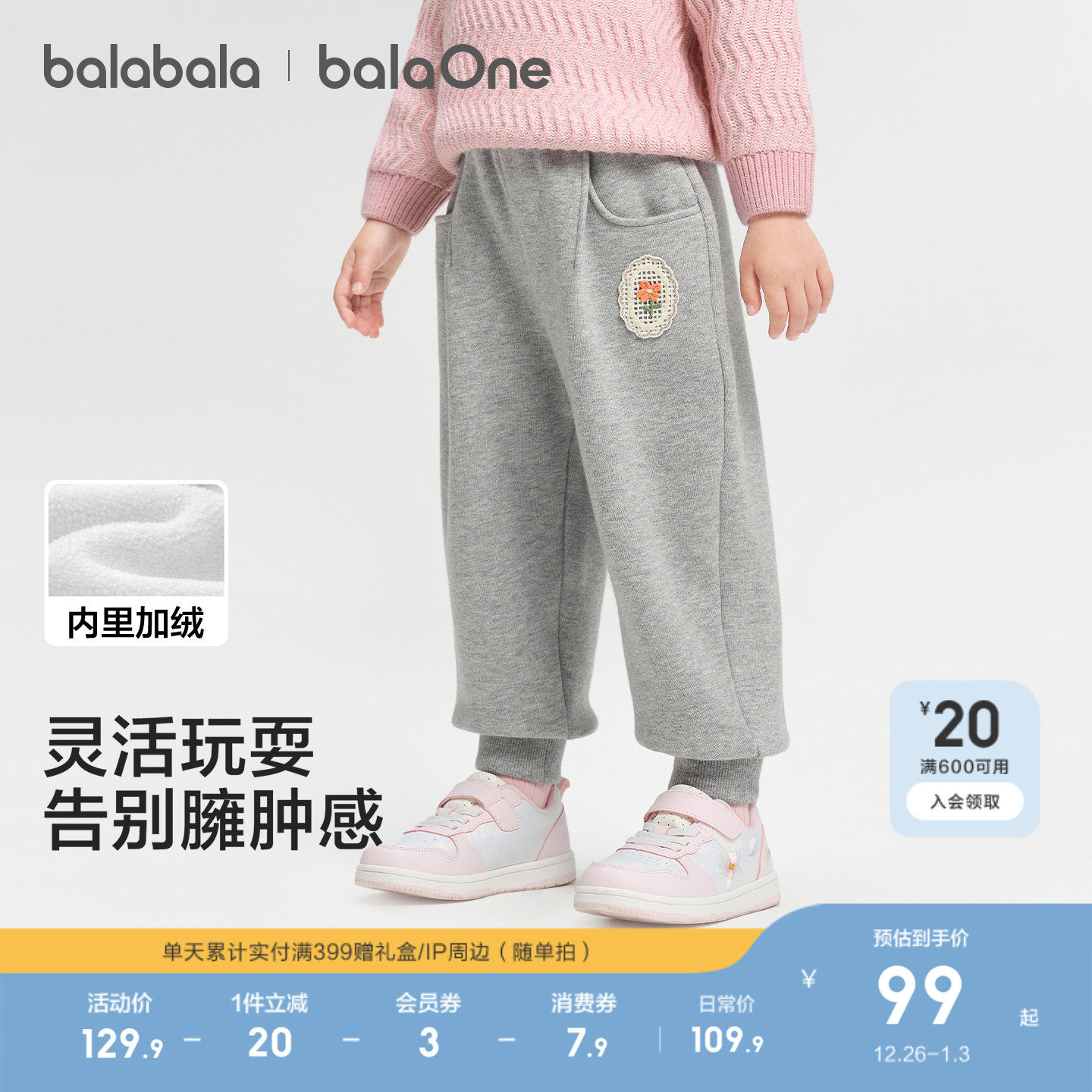 【balaOne】巴拉巴拉儿童长裤子女童加绒保暖2025冬装运动束脚裤