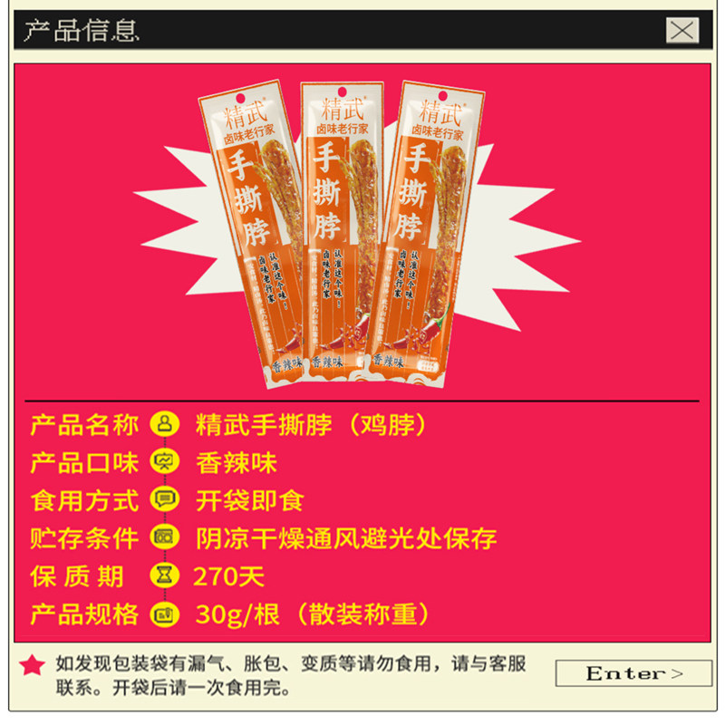 精武手撕脖30g/根解馋小吃休闲即食武汉特产辣卤鸡脖零食卤味辣味