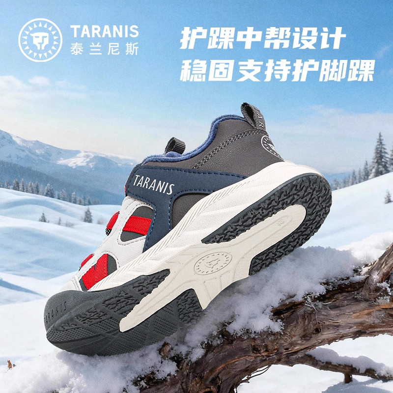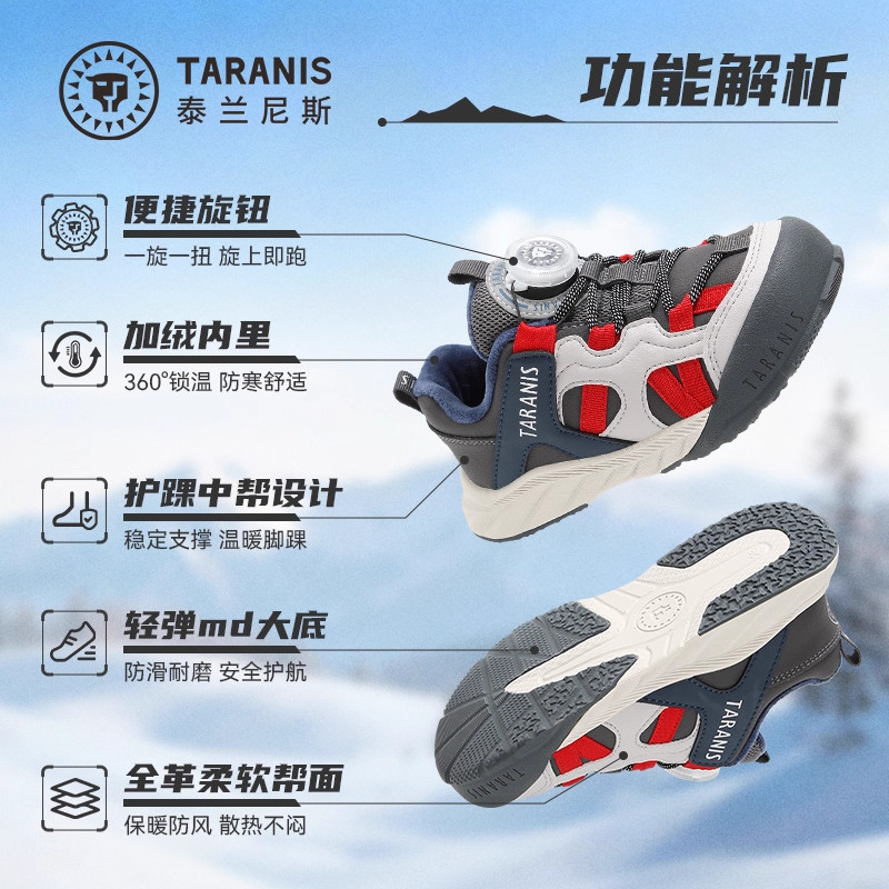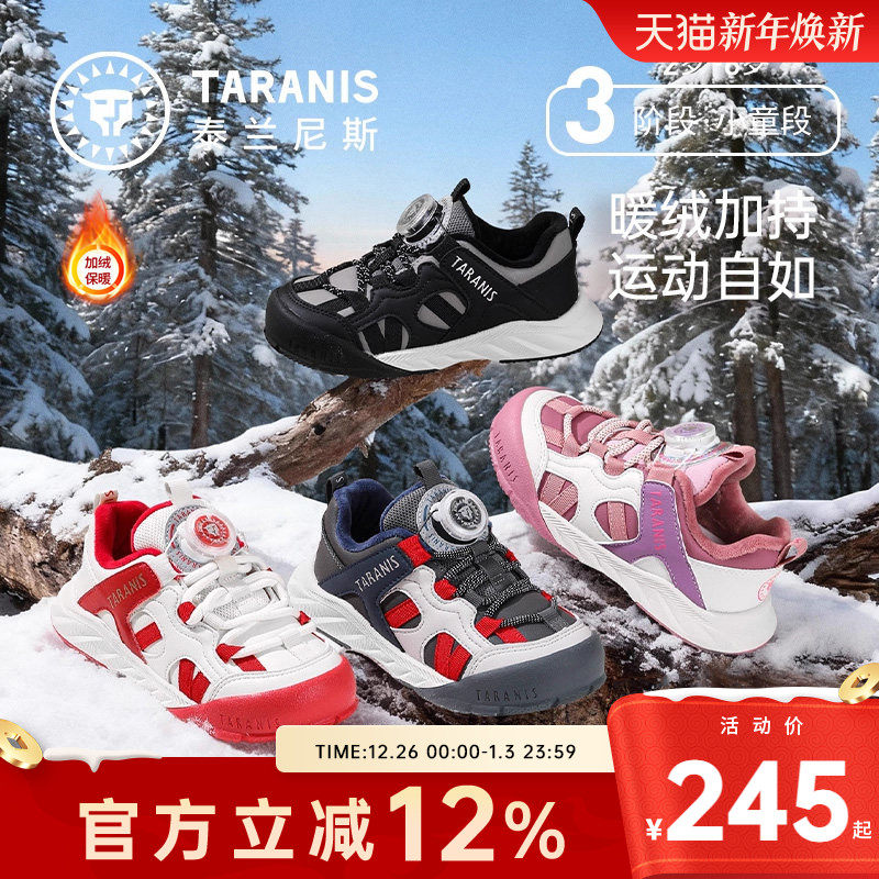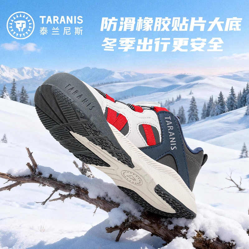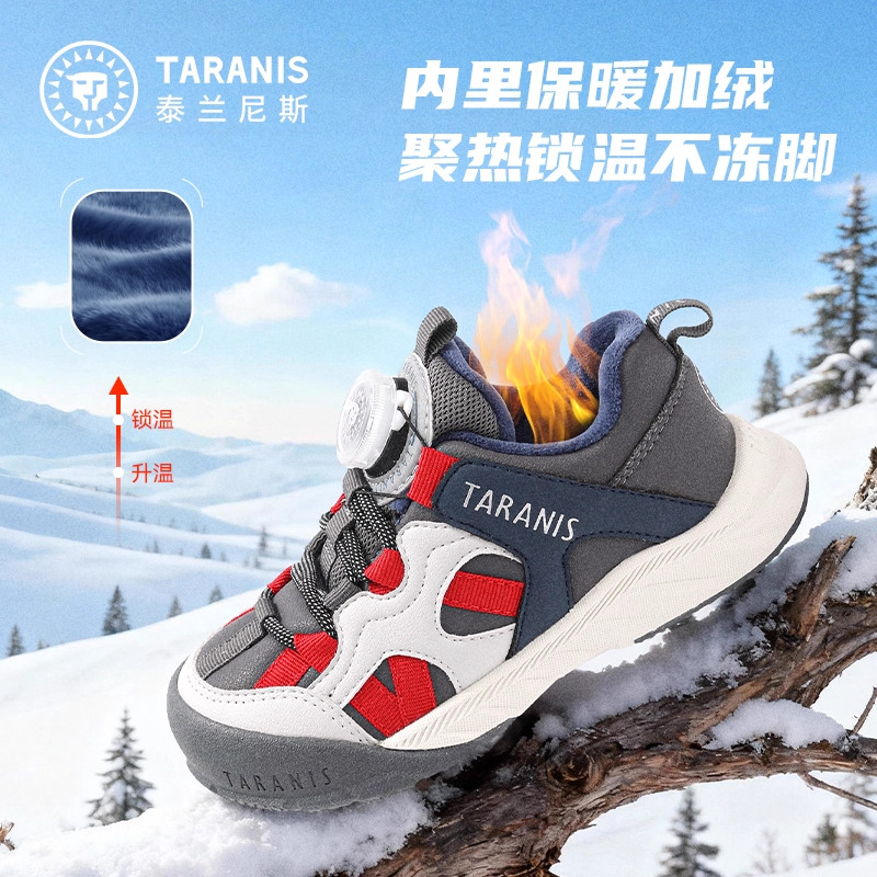泰兰尼斯冬季款儿童保暖加绒运动鞋女童时尚跑步男童平衡车旋钮鞋