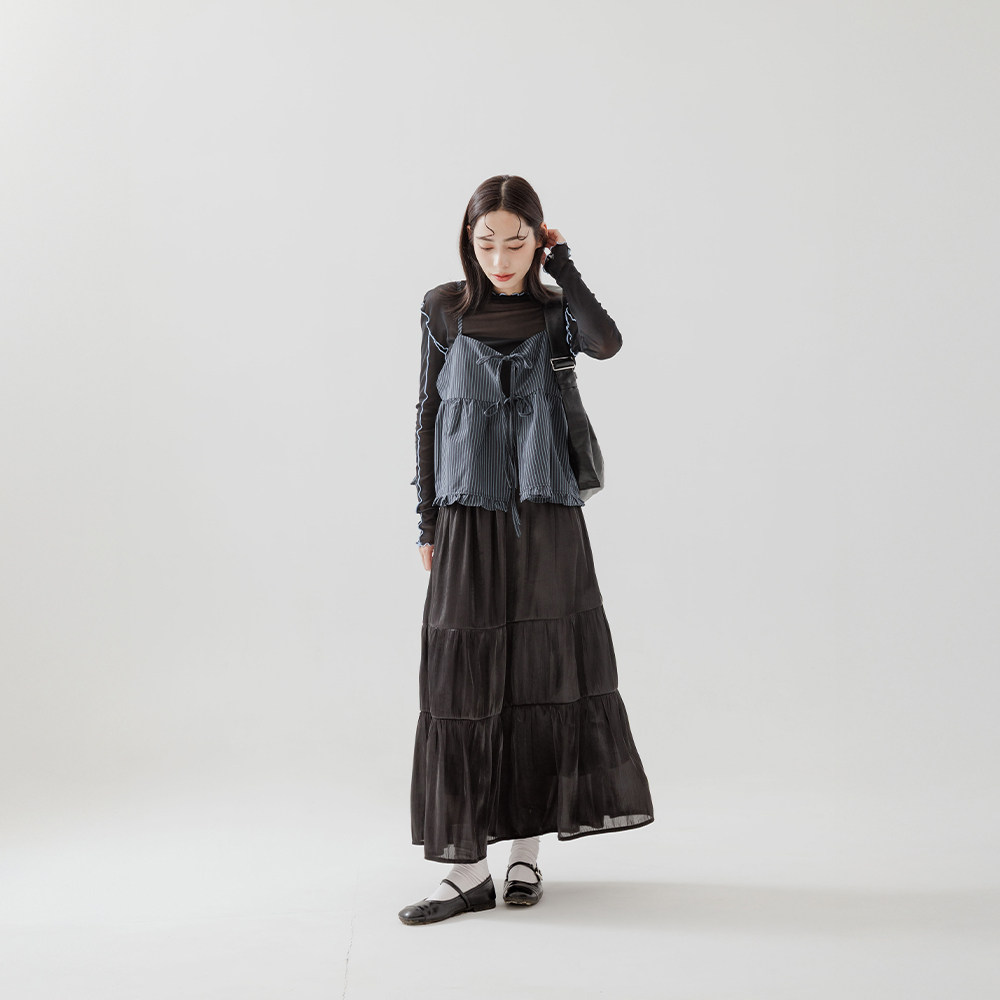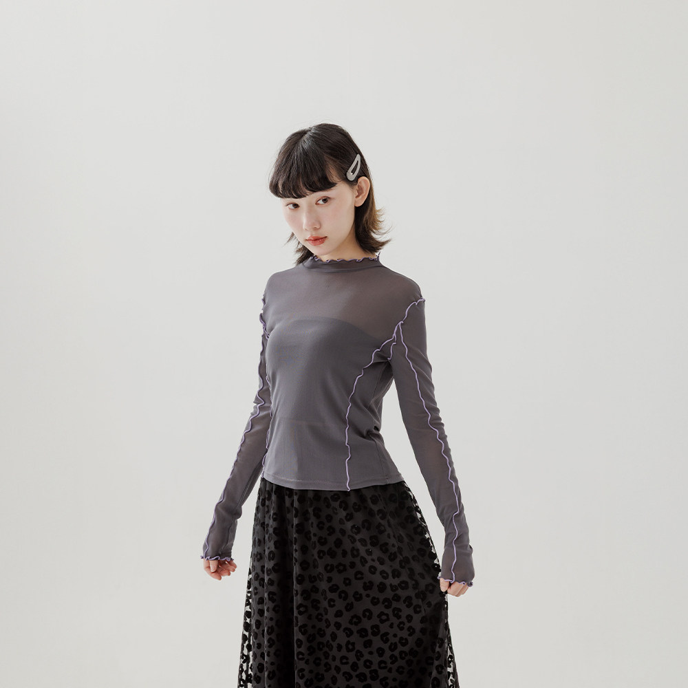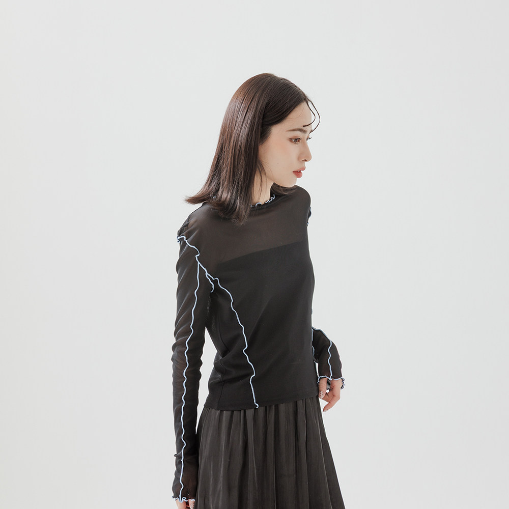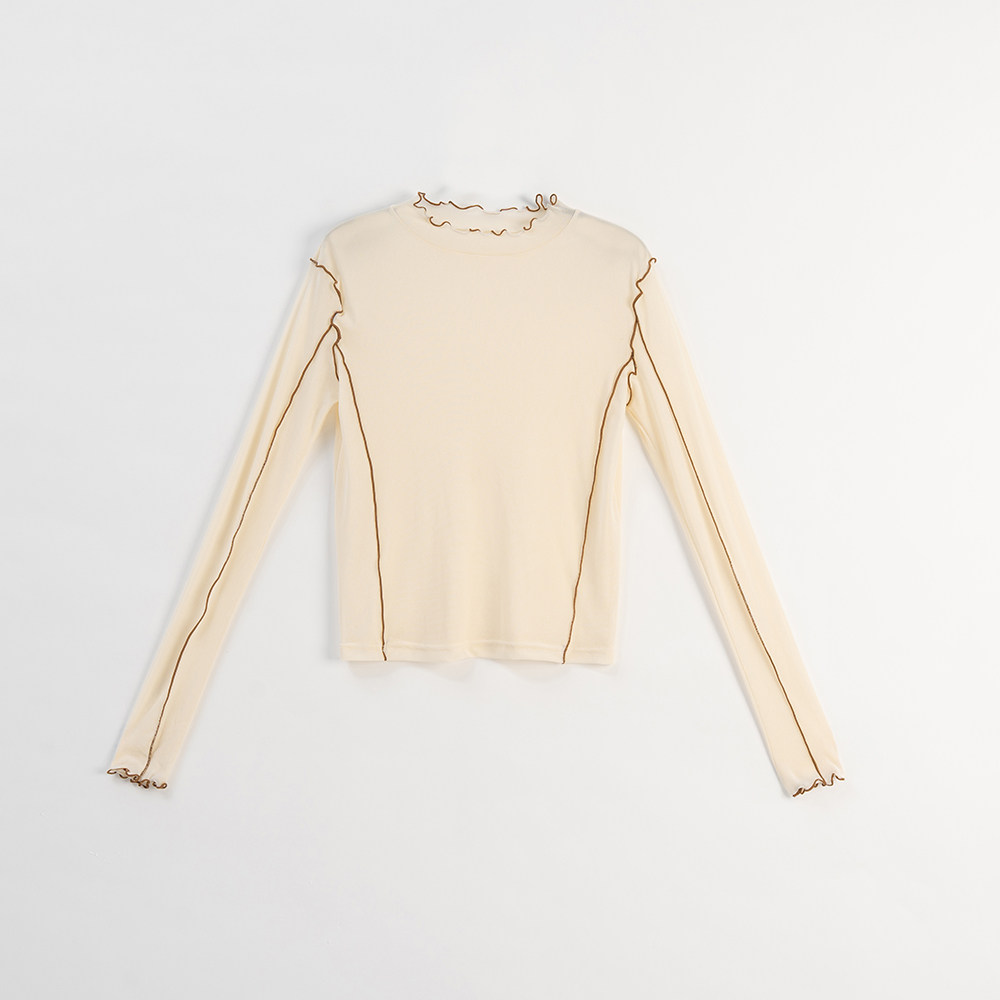 QUEENSHOP 2025秋冬新品女装棉花糖木耳边透肤高领上衣01099266