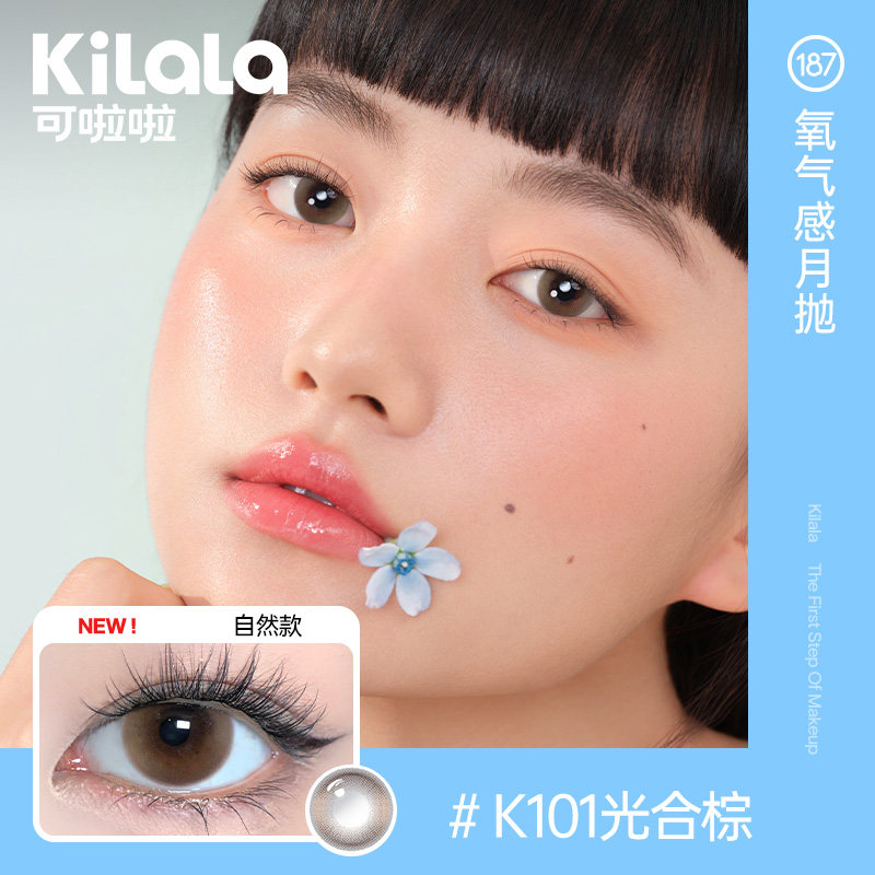 kilala可啦啦氧气感美瞳月抛硅水凝胶高透氧女彩色隐形眼镜晴川棕