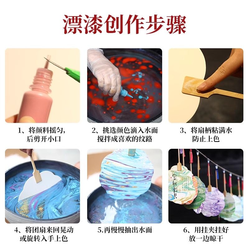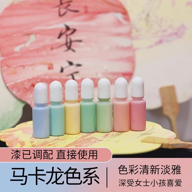 马卡龙色天然大漆漂漆套装非遗漆扇材料包diy颜料团扇手工宣纸扇