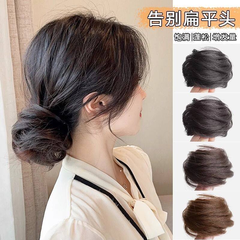 真发丸子头假发发圈假发圈假发包自然花苞头盘发假发女低扎丸子头