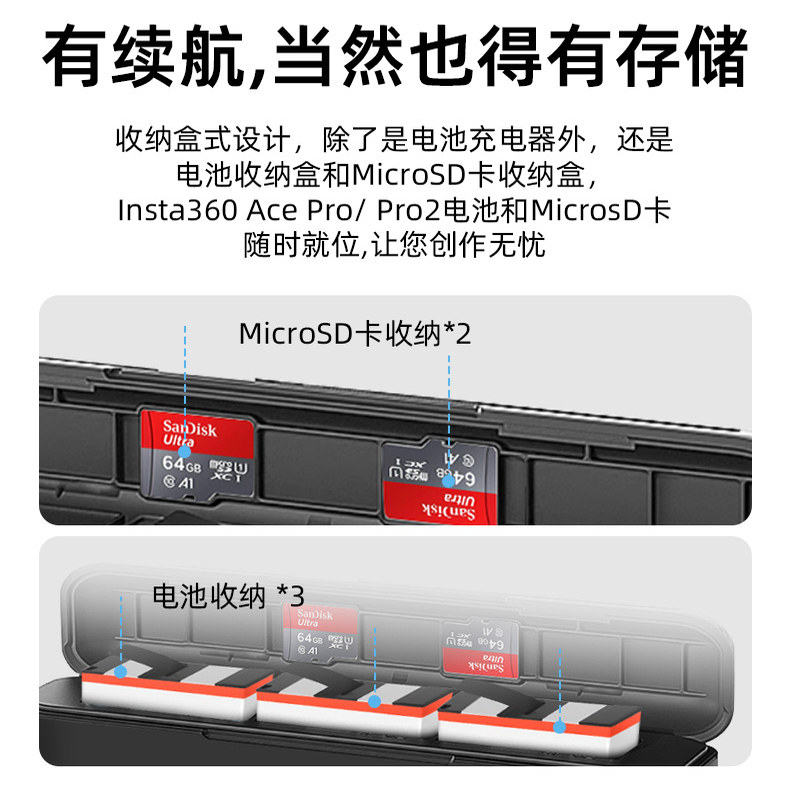 REYGEAK锐际适用AcePro2电池影石Insta360ace pro运动相机配件充电管家电池盒