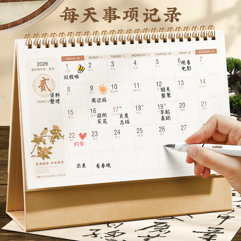 台历2026年新款日历定制logo创意简约小清新韩式办公年历个性中国风桌面摆件商务工作记事计划本订制广告月历