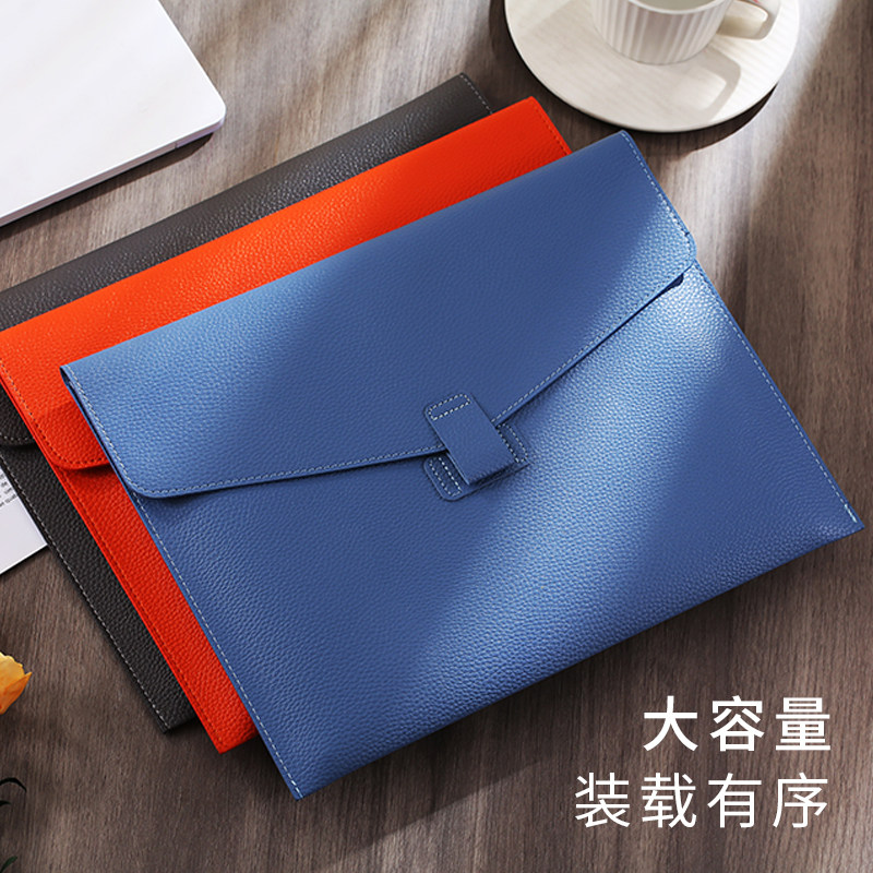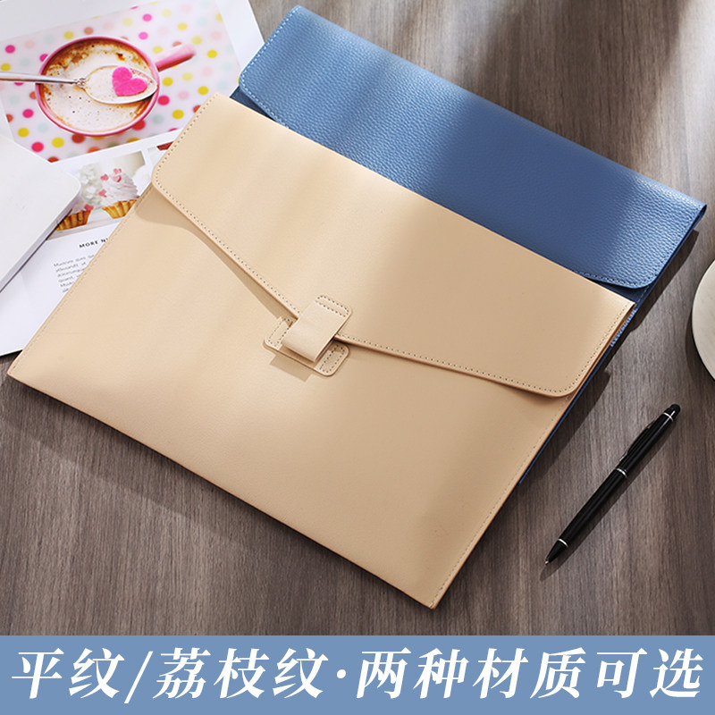 商务皮质文件袋定制a4纸档案袋文件文件包加厚防水资料按扣公文袋办公合同票据手提便携大容量收纳可印logo