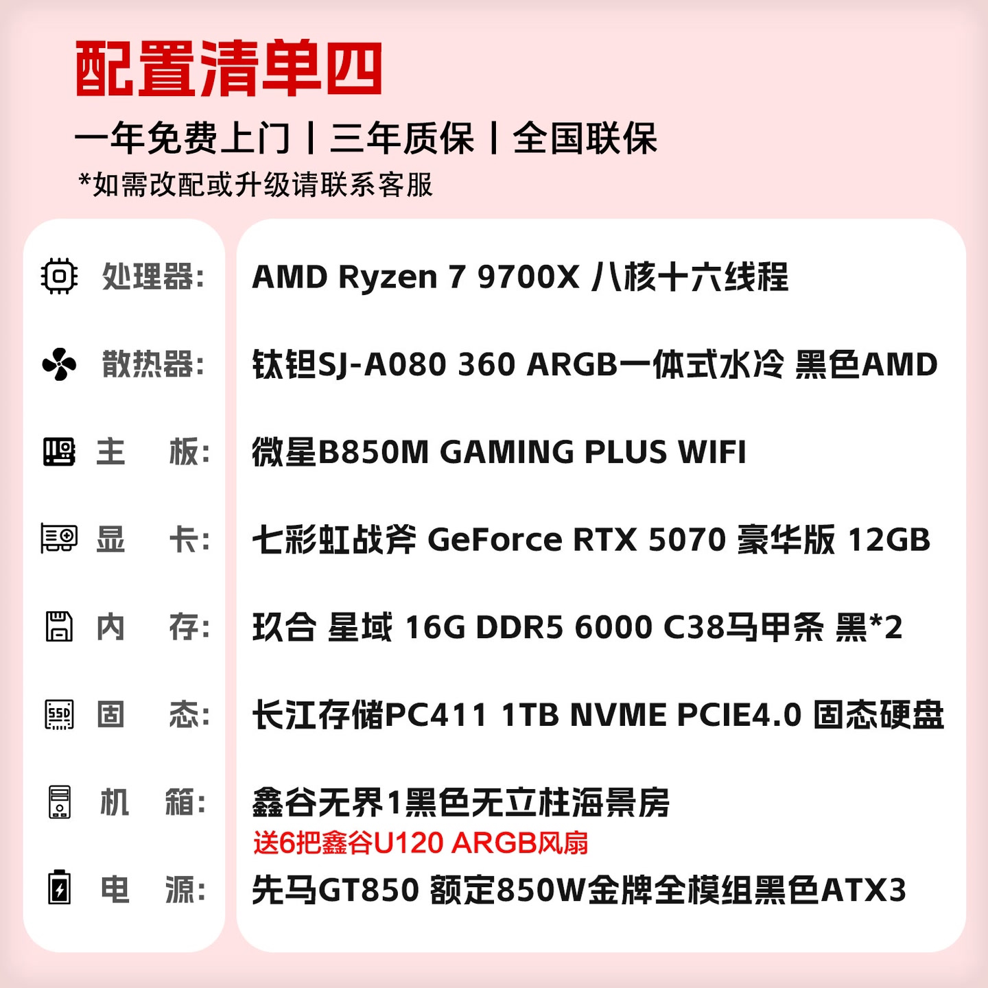 【4号】7800X3D/9800X3D RTX5070/TI高画质游戏DIY台式主机电脑