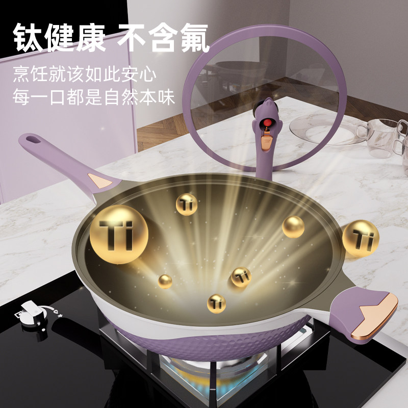 炊大皇无氟涂层不粘锅炒锅家用聚油不沾锅燃气电磁炉用钛锅炒菜锅